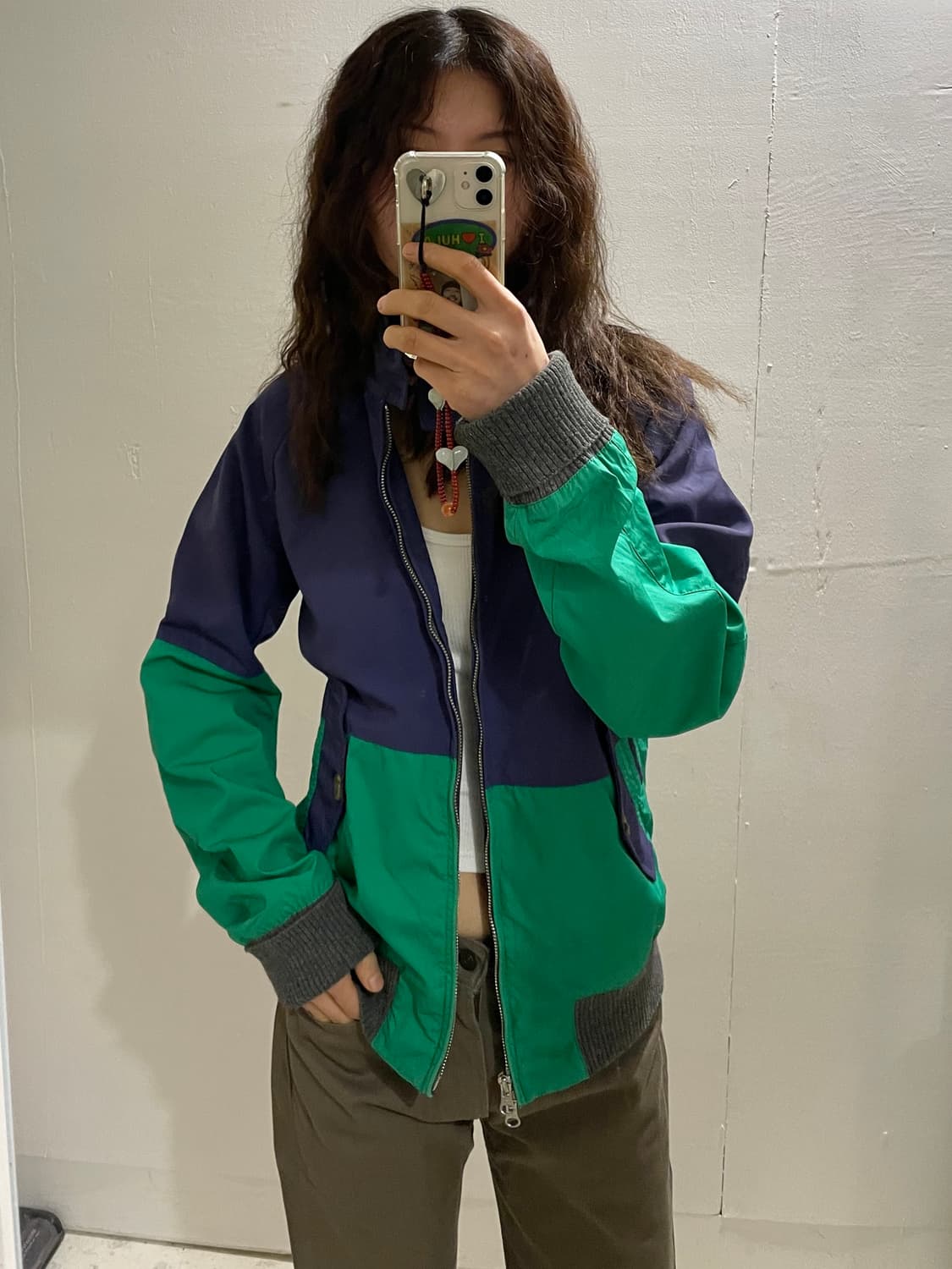 💚바라쿠타의 G-1자켓 💚컬러블록 디테일이 멋져요 💚시보리가 있는 블루종 스타일! 가슴: 54.5 옆목~소매: 80 총길이: 65