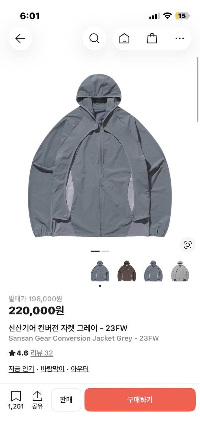 1 2 3 4 산산기어 듀얼 쉐이드 자켓 그레이 미개봉 새제품 판매