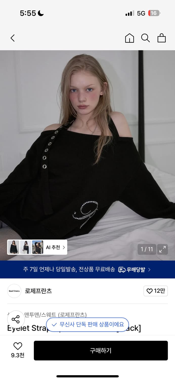 새상품)) 로제프란츠 아일렛 스트랩 오프숄더 맨투맨