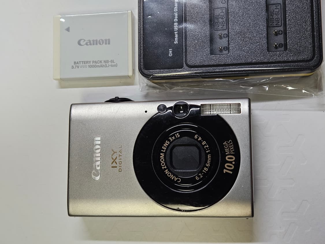 익서스85 내수모델 ixy25 입니다. 메뉴는 영어,일어 나옵니다. 전체적으로 깨끗한 편인데 렌즈주변 검정테두리 부분이 블랙이라 기스가 두드러지게 보이네요. 정품배터리,호환충전기, 메모리 구성입니다. 액정도 이상없이 잘나오고 모든 기능 정상적으로 잘 작동합니다. 입 금 거래 하실 경우 만원+택배비 빼드립니다.