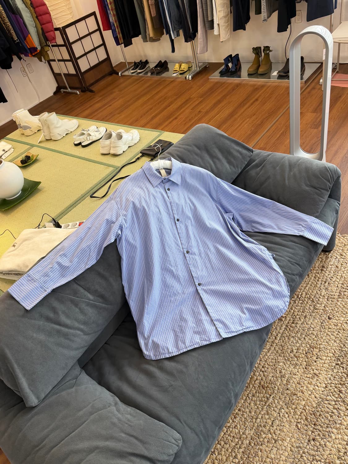 신야코즈카 22SS 스트라이프 셔츠 Shinya Kozuka Size / Chest / Length / Shoulder / Sleeve M / 68 / 84 / 56 / 55 Condition: A Notes: 버트 사이드 슬릿 디테일, 오버 사이즈 *모든 제품은 꼼꼼한 검수를 거쳐 업로드되며, 정품만을 판매합니다. *빈티지 의류 특성상 특유의 사용감 또는 오염, 미처 발견못한 하자가 있을 수 있습니다. *실측은 재는 방법에 따라서 사람마다 1~3cm에 오차가 있을 수 있습니다. *빈티지 특성상 대부분의 제품은 재고가 하나뿐이며, 사용 여부를 확인하기 어렵습니다. 교환 및 환불이 어려우니 상세 이미지와 실측 사이즈를 꼼꼼히 확인하신 후, 궁금한 점이 있으시면 문의해 주세요.