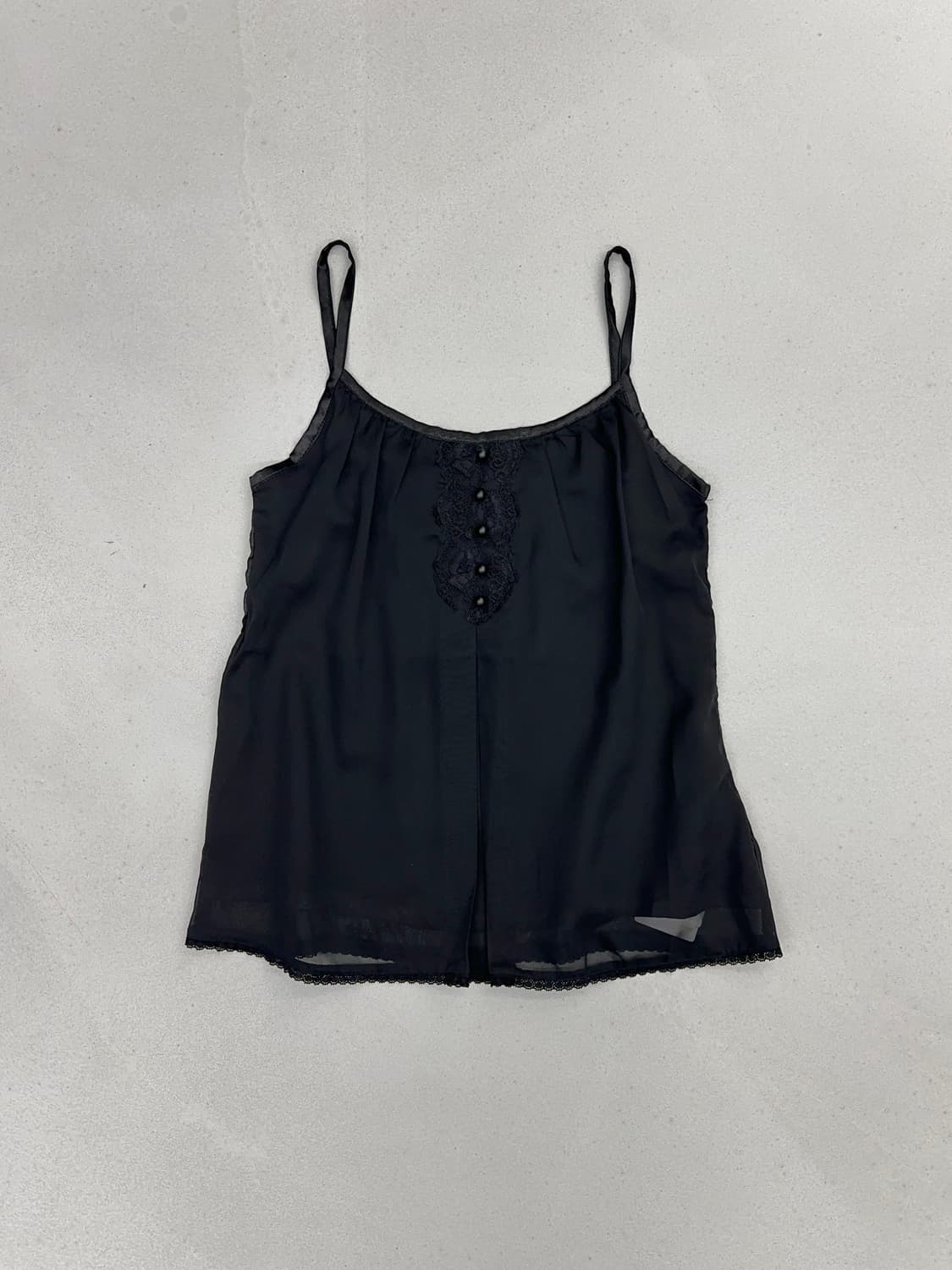 막시마 미국 빈티지 자수 레이스 실크 감성 슬리브리스 탑