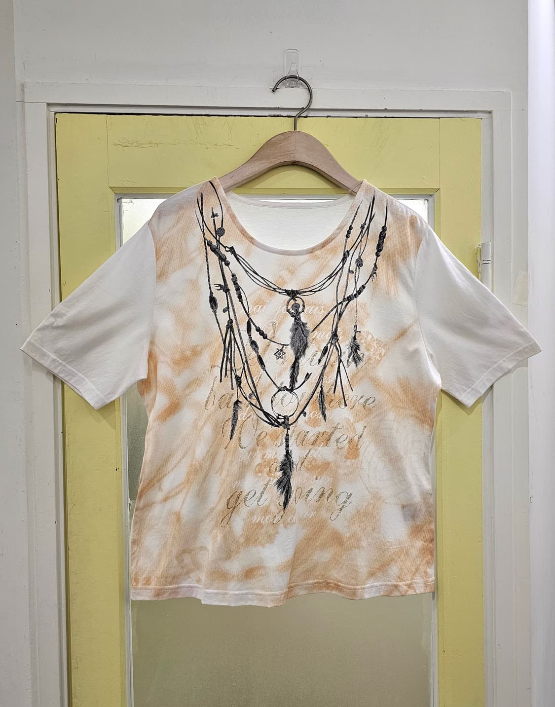에스닉한 목걸이 프린팅이 된 반팔로 별도 악세사리 레이어드 없이도 포인트로 입기 좋습니다 새제품이라 컨디션도 좋습니다 레터링쪽엔 골드 글리터로 되어있지만 과하지않고 예쁩니다 ✔️표기M-L ✔️면100 ✔️새제품(세탁으로 택제거) ♦️세탁 후 판매해도 빈티지 특성상 모든 제품이 완벽할 수 없습니다 그로 인해 교환, 환불은 어려우니 참고해주세요 ♦️10만원 이하 배송비3,000/제주6,000 입니다