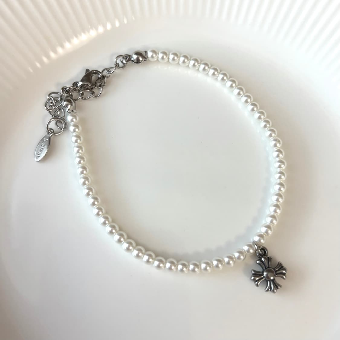 화이트 진주 팔찌에 크로스 팬던트 포인트 들어간 제품이에요🩶 착용하면 손목 여리여리해 보이고 데일리로 어디든 잘 어울려요! ✔ 미착용 새상품 ✔ 사이즈 조절 가능 (연장체인 있음) 심플하면서도 포인트 되는 디자인입니다 직거래 / 택배 가능 편하게 문의 주세요!