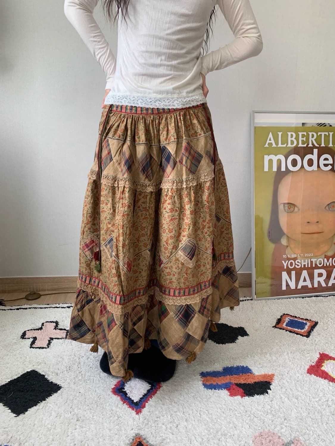 condition. C waist 41 (**) length 75 요건 팔리지 않는다면 소장할 예정인데요! 허리가 조금 늘어나있어 마르신 분들은 수선, 혹은 저처럼 와이드한 팬츠 위에 레이어드 하는 느낌으로 착용하시면 좋겠어요! * insta @oyoyohaus * 중고 특성상 교환 및 환불 불가