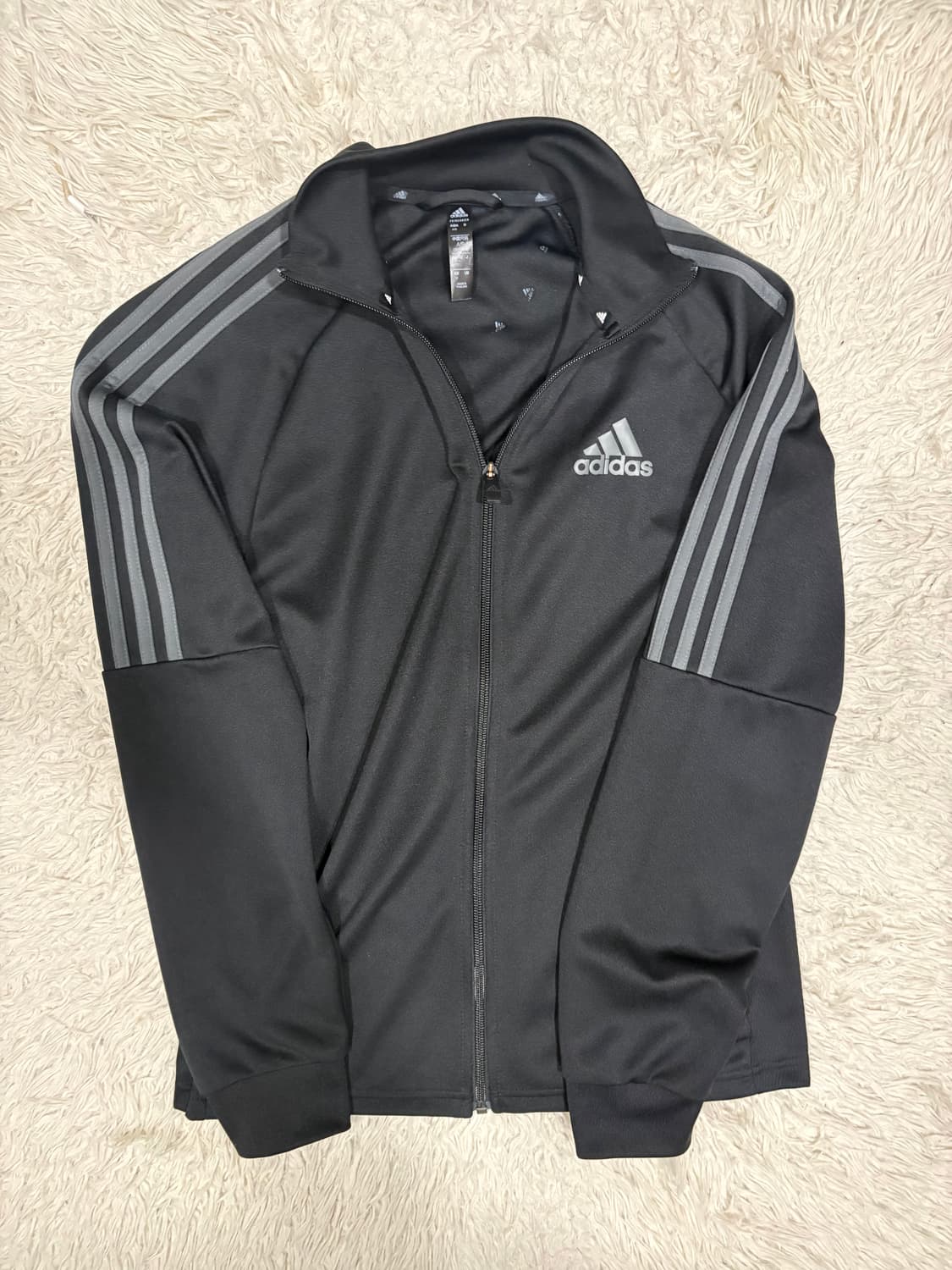 아디다스 프라임그린 소재의 블랙 트랙탑 져지입니다 빈티지샵에서 구매한 제품이며 사이즈는 M, 95정도됩니다 !! 면 재질이 아니라 시원하고 편해서 운동할때나 평상시에 입어도 충분합니다 !! 하자 오염 없습니다 !