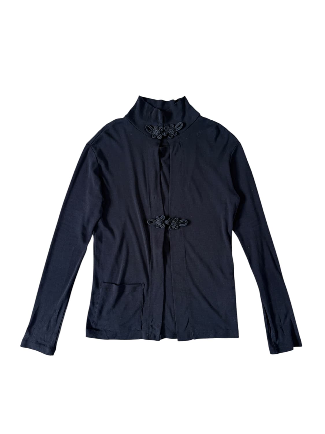 목을 감싸는 하이넥 디자인과 전면의 차이나 버튼 디테일이 동양적인 무드를 연출하는 탑 입니다. -condition : a+ -size : (2) 어깨 46 총장 70 팔 60 -vintage 특성상 오염 및 데미지가 존재할 수 있으며 참고하시어 신중한 구매 부탁드립니다.