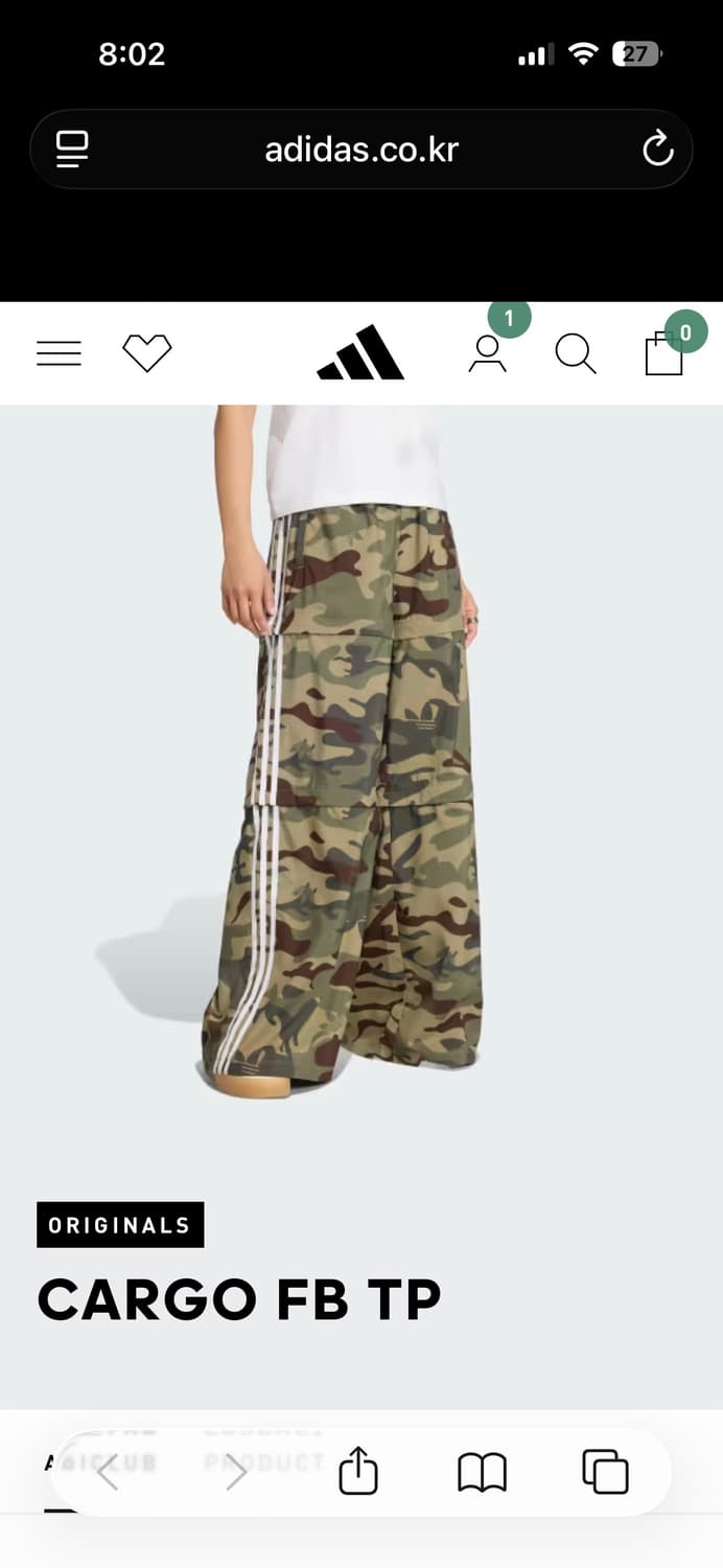 아디다스 카고 카모 트레이닝 바지입니다. 원가 18만9천원 두고 매장에서 샀어요 여름에 입기 좋은 시원한 나일론 재질이고, 반바지로 만들어 입을 수도 있어요 2회 착용 상태 좋아요 문의 없으시면 바로 안전결제해주시면 됩니다!