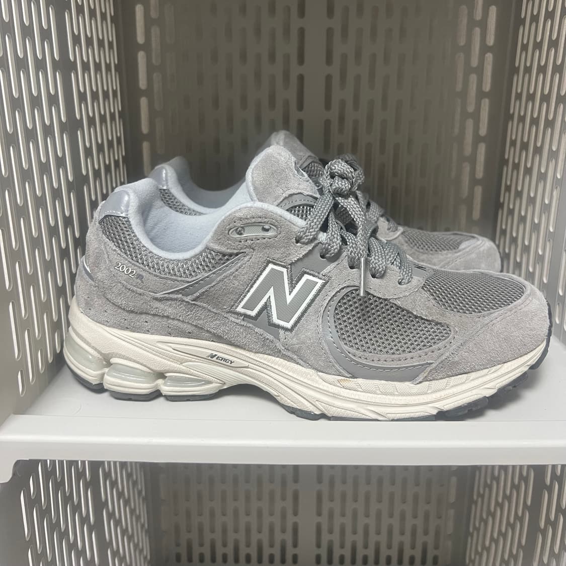(3회 착용) 뉴발란스 2002r 그레이 255입니다 무난한 디자인이라 어떤 코디에도 잘 어울립니다 !