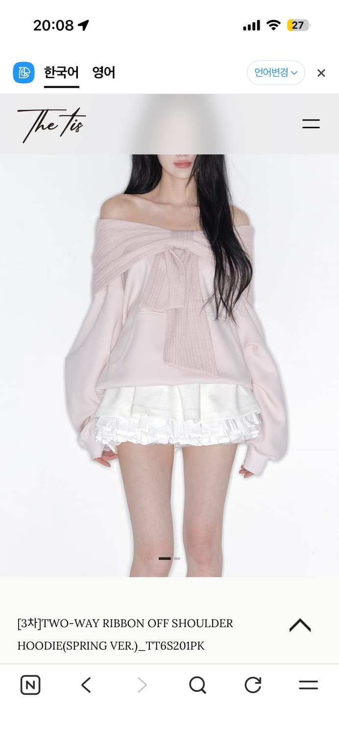 오프숄더 디자인의 더티스 리본 후드 핑크입니당 사진보다는 조금은 어두운 핑크색상이에요 집에서 시착만 1번 해본 택 달린 상품입니다!! 키가 큰편이고 골반이 넓어서 그런지 핏이 애매해서 안 입을 것 같아 판매합니다ㅜㅜ