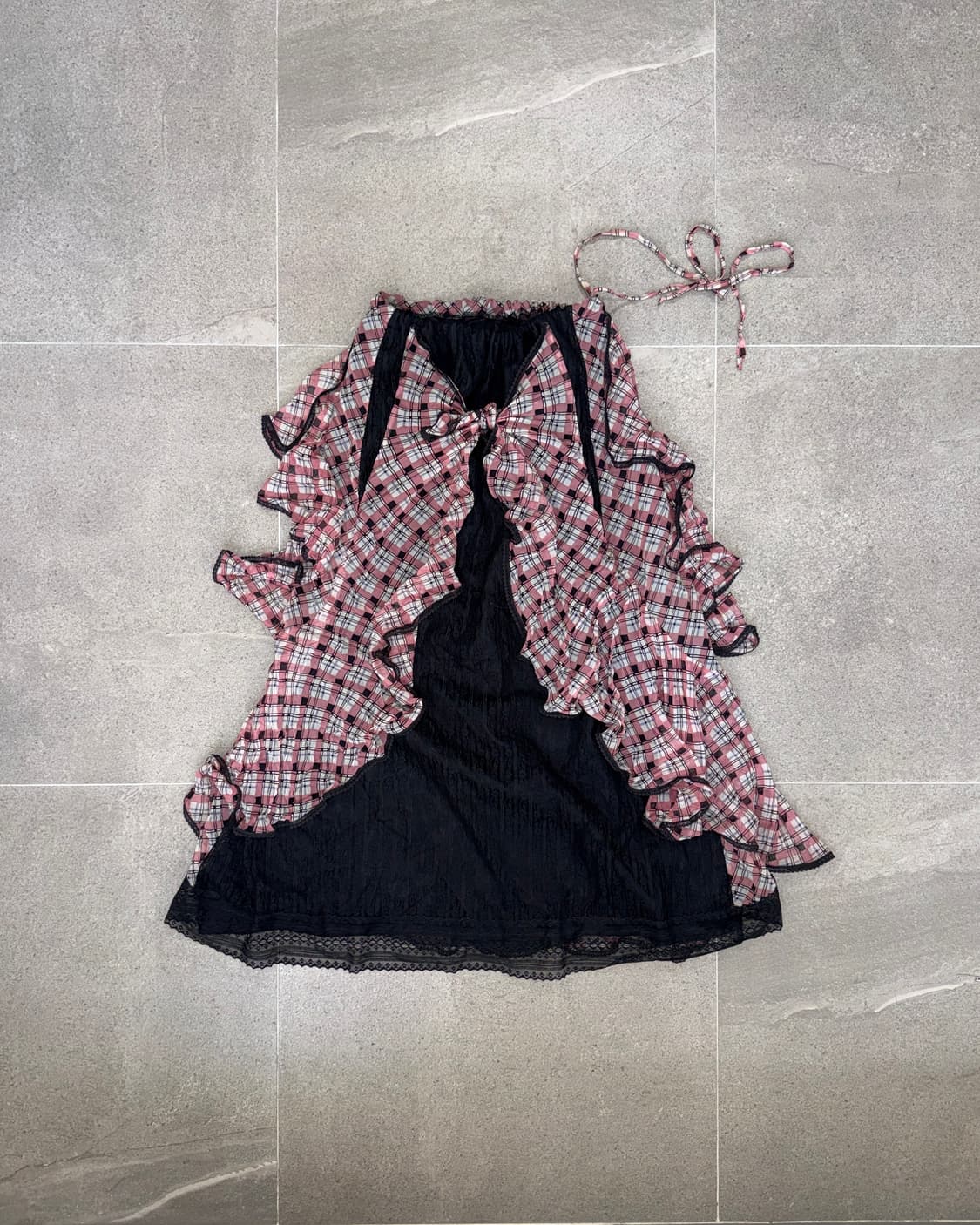 일본빈티지 액시즈팜 체크 레이스포인트 롱 스커트