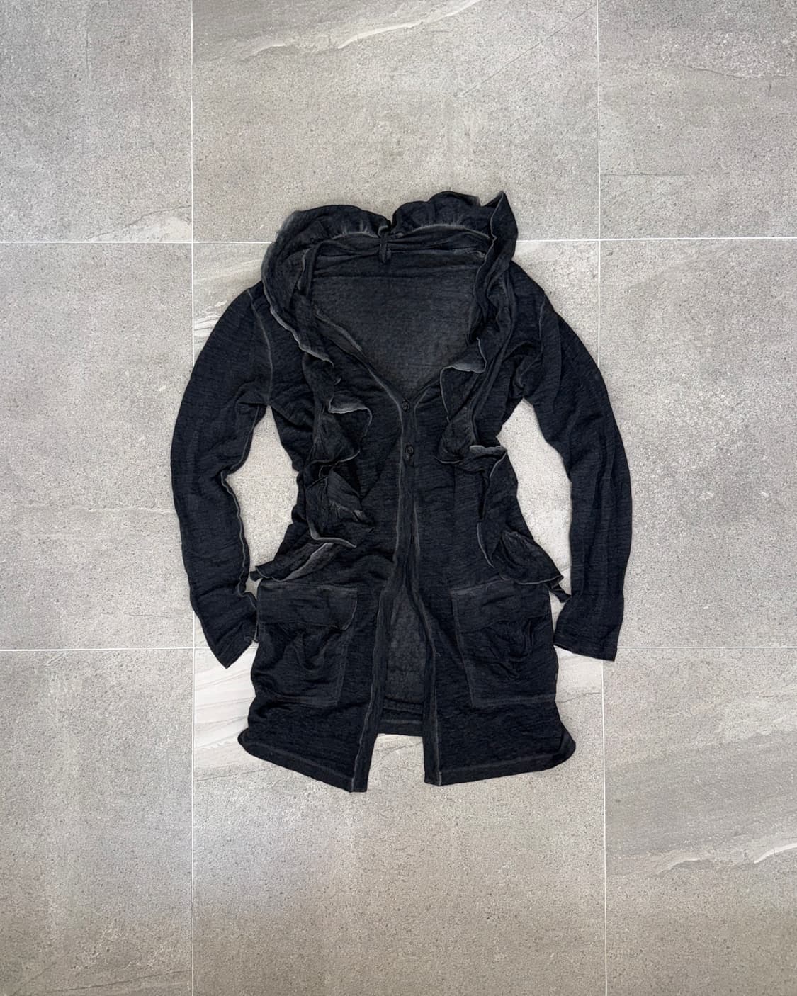 Cop Copine charcoal ruffle draped 가디건
