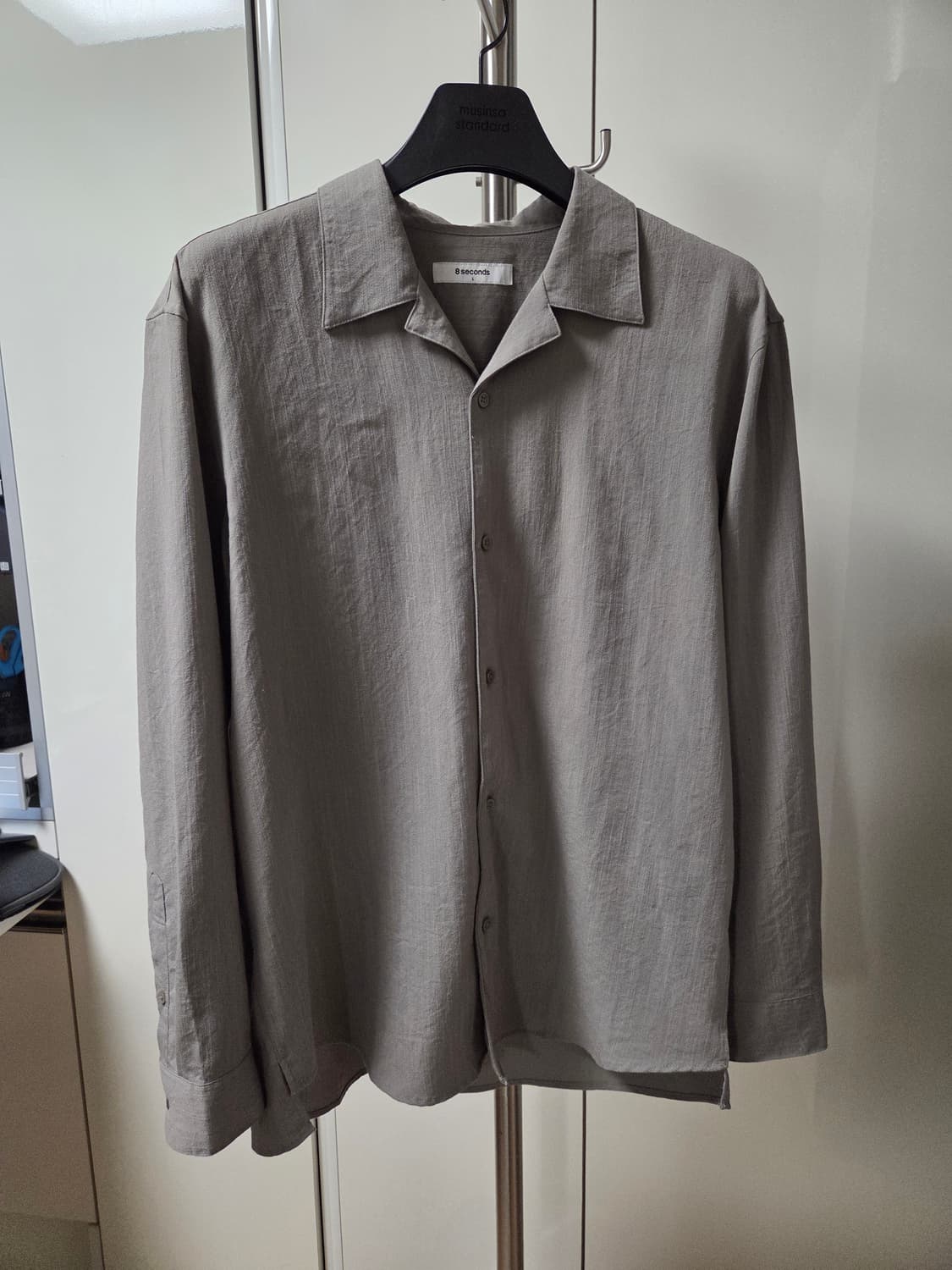 린넨 질감을 구현한 시원한 소재의 셔츠에요 단추도 셔츠랑 색상을 맞춰서 고급스런 느낌이에요 구김도 잘 가지않고 찰랑찰랑 멋스러운 셔츠인데 살 빠지고 저한테 많이 커졌어요 사이즈는 L인데 릴렉스핏이라 국내 105 추천 실측 어깨 52 가슴단면 58 기장 77