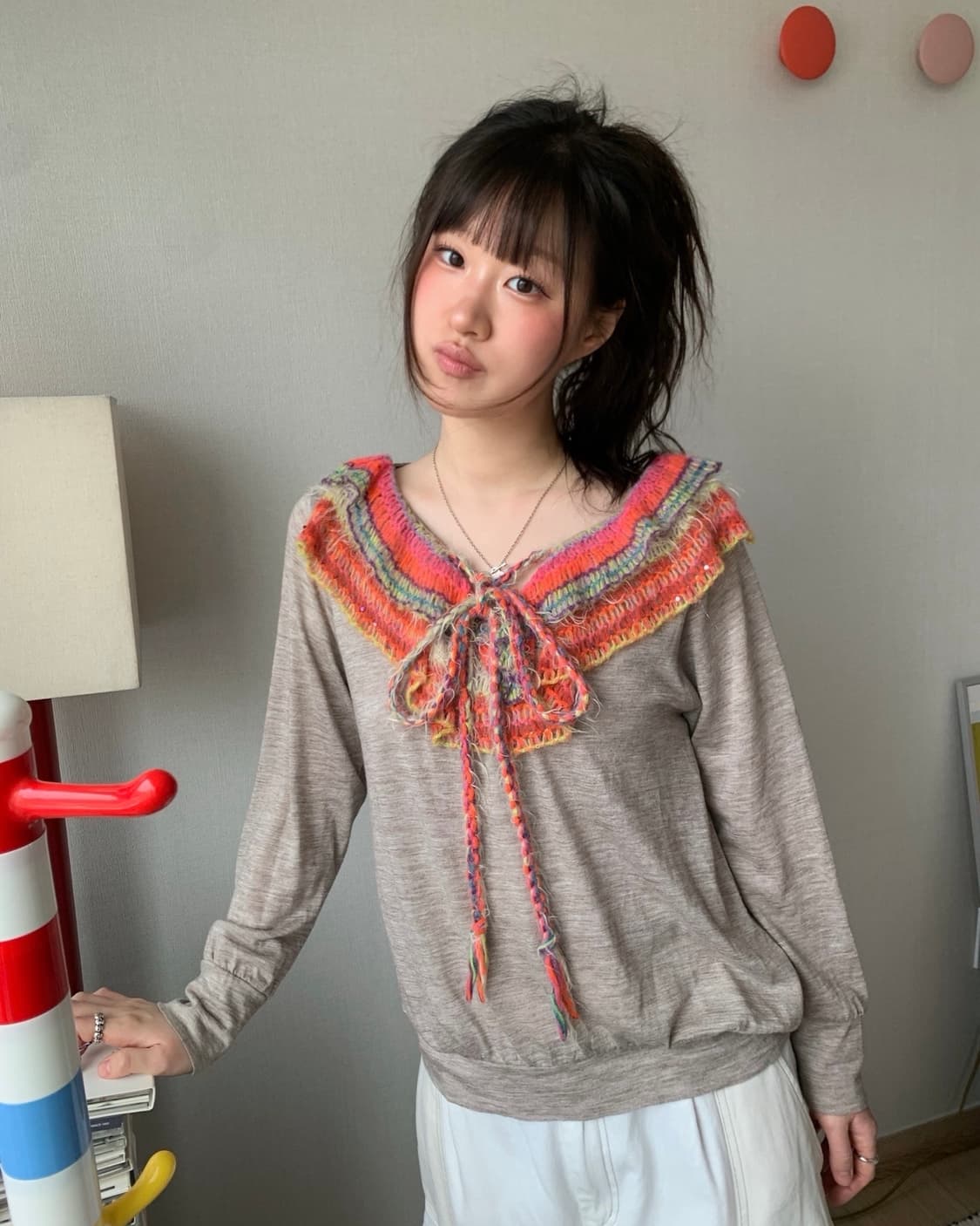 • 츠모리치사토 그레이 박시 가디건