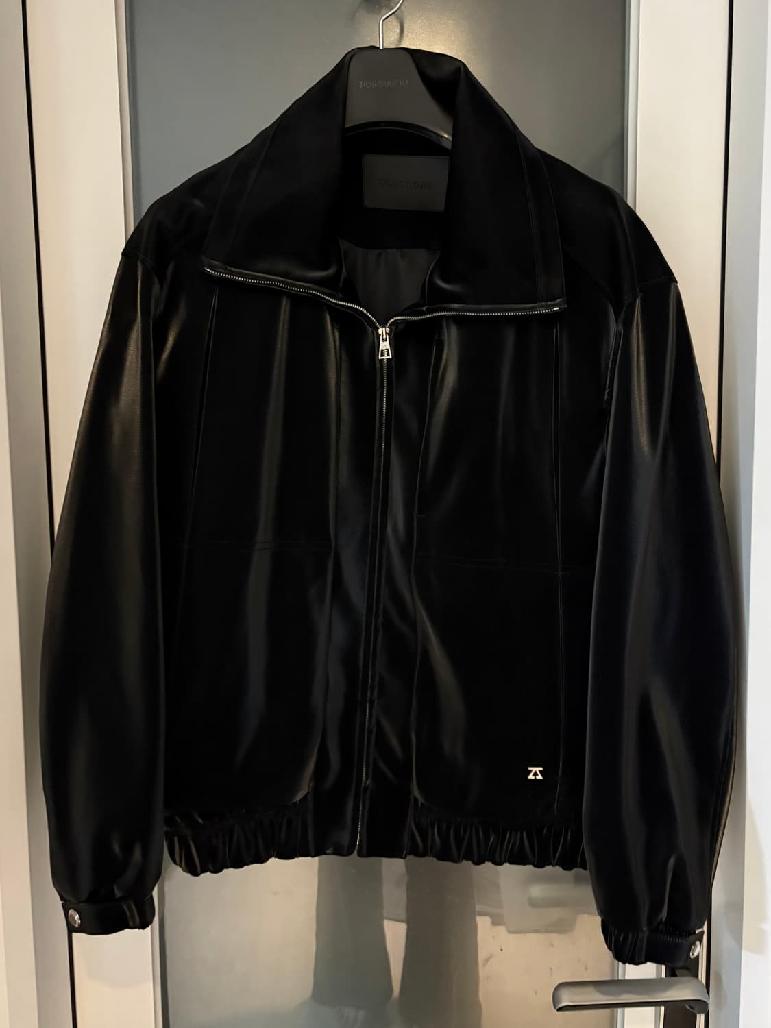 지오송지오 블랙 자켓입니다. 독특한 광택이 도는 블랙 색상이 고급스럽습니다. 밑단은 밴딩으로 되어있어 트렌디한 느낌을 줍니다. 총장 74 어깨 48 별도 문의 없으시면 바로 안전결제 부탁드려요! 해