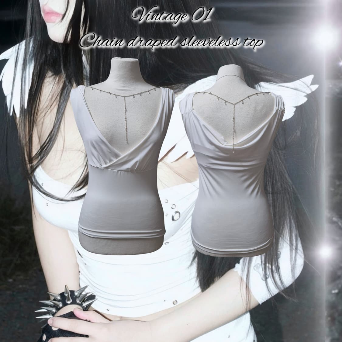 Vintage 01 Chain draped sleeveless top(Blanc) in A condition 총장 45 가슴 43 화이트 드레이프 체인 슬리브리스 탑 딥 넥라인, 깔끔한 컨디션 ꦿ᭄구매는 채팅으로 문의주세요