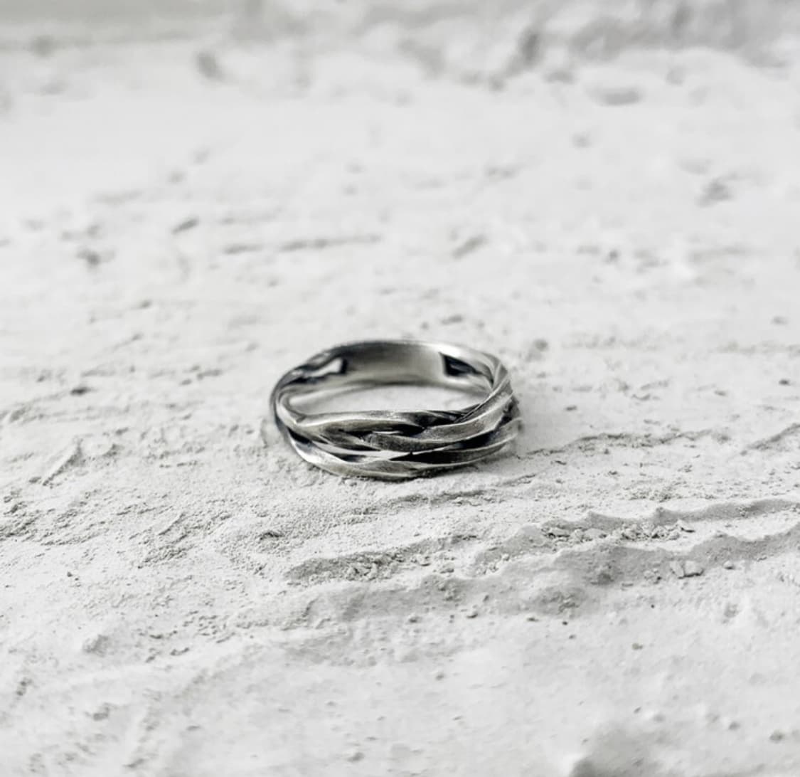 바호스튜디오 Rock twist ring 제품입니다 925 실버 소재이며 9호 사이즈 ( 약 52.4mm) 생활 잔기스 외 찍힘,찌그러짐 없이 좋은 컨디션 유지중입니다. -정가 187,500원