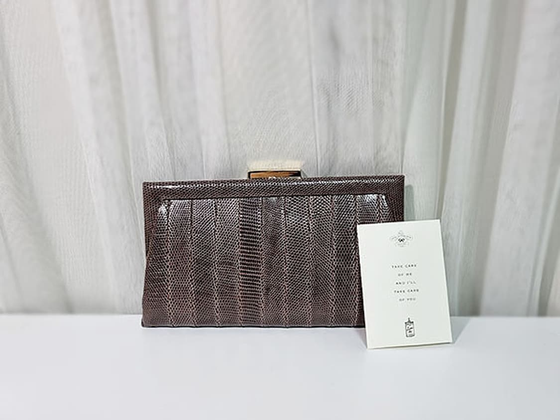 사이즈 25 x 13.5 x 3 안야힌드마치 클러치 도마뱀 가죽소재.안감 스웨이드가죽 100만원대 였어요 수납많이 되지않는 사이즈예요 컨디션 양호합니다.