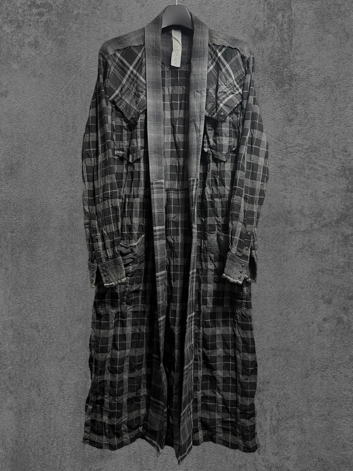 C Diem Plaid Coat 해체적 미학이 드러나는 피스입니다. 톤 다운된 블랙/그레이 기반의 플레이드 패턴 위에 거칠게 정리된 디테일과 자연스러운 주름감이 어우러져 깊이 있는 텍스처를 만들어냅니다 Color : Grey Plaid Material : 86% Cotton, 14% Linen Size : 3 어깨 : 54 가슴 : 62 총장 : 139 압도적인 떨어지는 기장감과 굉장히 얇은 원단이 만들어내는 플레어 또한 매력적입니다
