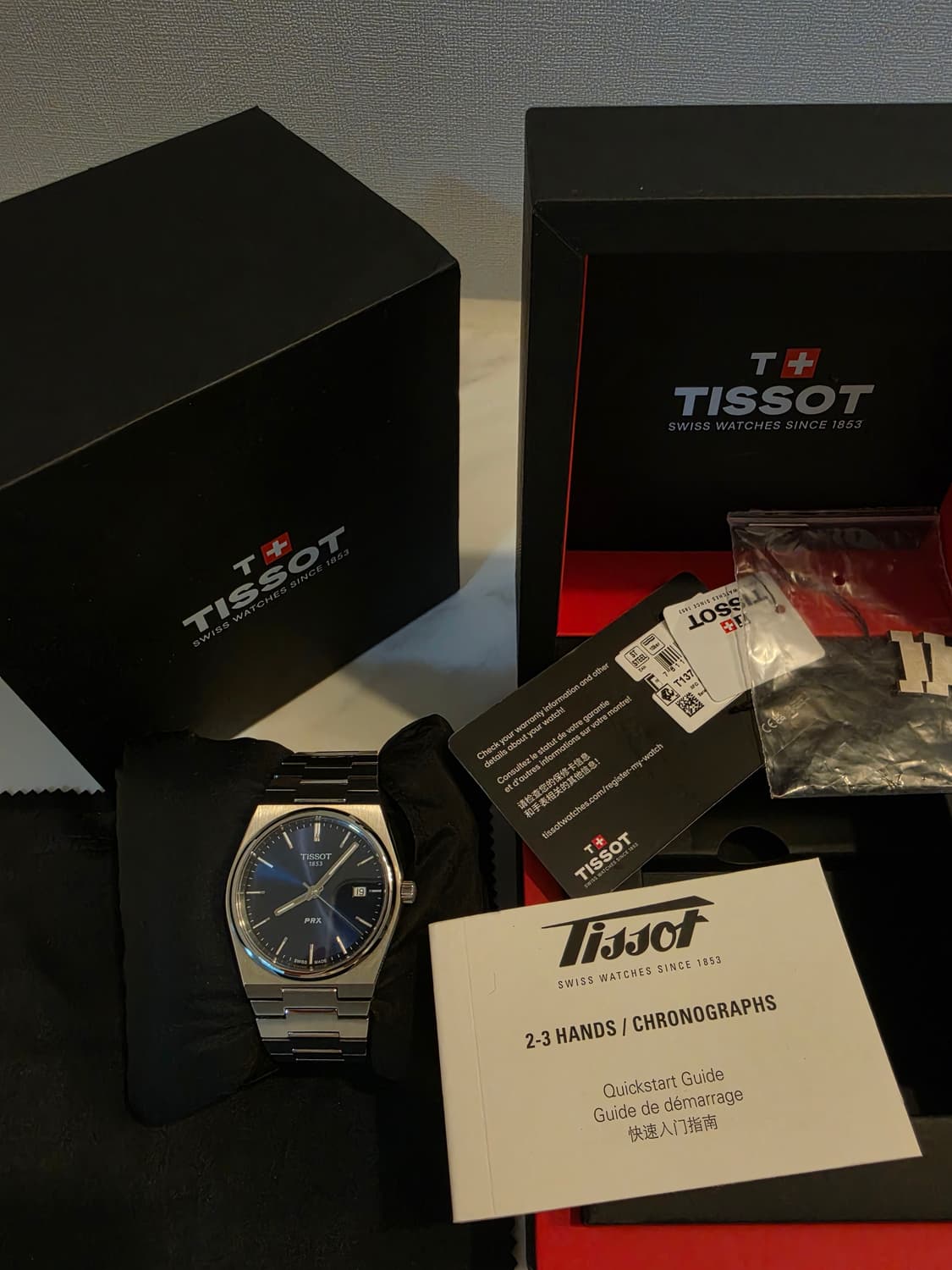 티쏘 PRX 40mm 청판 쿼츠 판매합니다. 크림 구매 풀박스 구성으로 박스, 여분코,보증서 전부 보유하고 있습니다. 잠시 사용하여도 생기는 자연스러운 생활기스 외에 눈에 띄는 상처 없이 상태 좋습니다. 워낙 유명하고 인기 많은 모델인데 시계를 찰 일이 거의 없어 아깝지만 판매합니다. 착용감이 좋으며 빛을 받으면 특유의 컬러감이 느껴져서 더욱 예쁩니다.