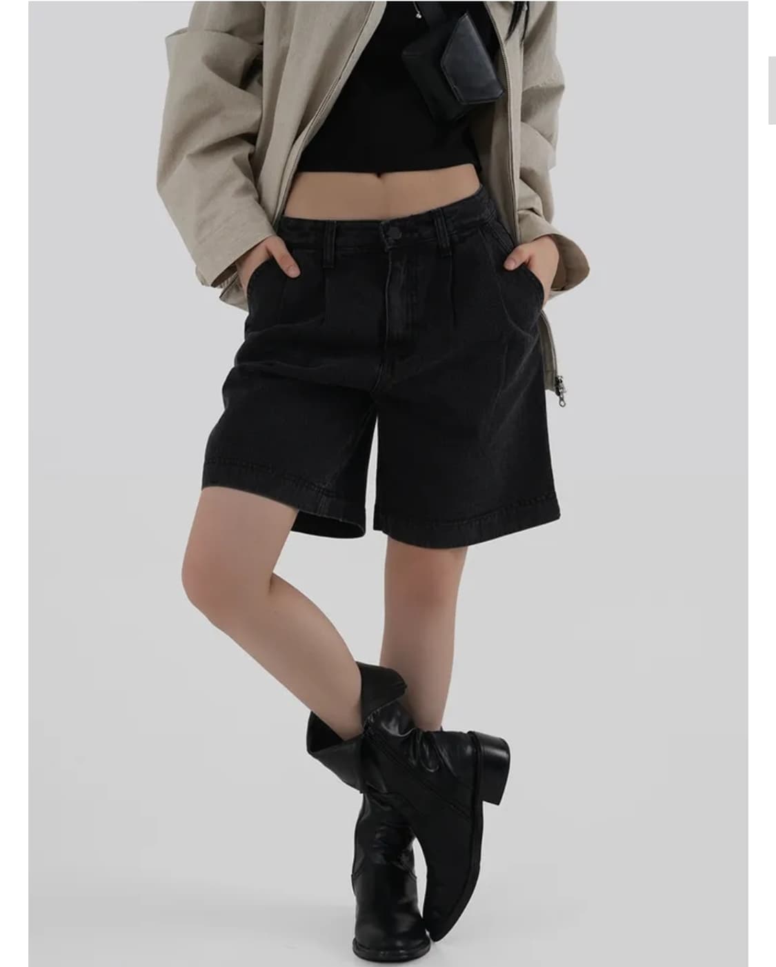 • Ootj 블랙 데님 숏 팬츠 로우라이즈 반바지