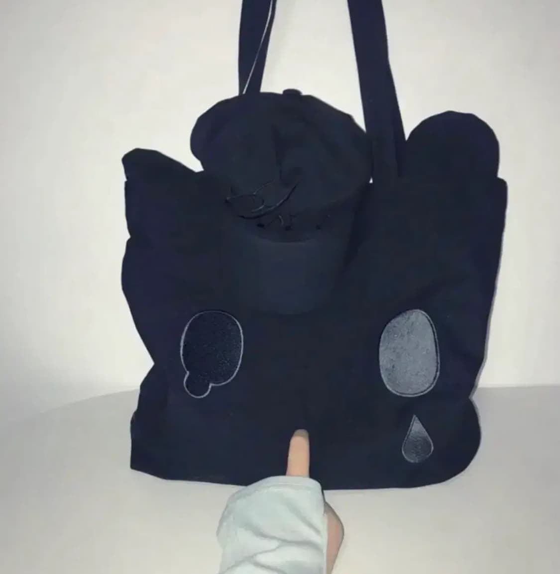 몽진존 검정색 눈병 걸린 토끼 귀 백팩 일본 서브컬쳐 가방