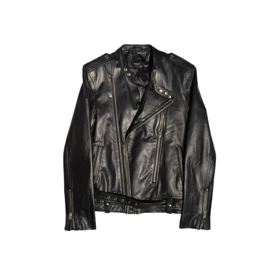 이로 양가죽 라이더 자켓 사선지퍼 스냅 버튼 넥 디테일 투톤 배색