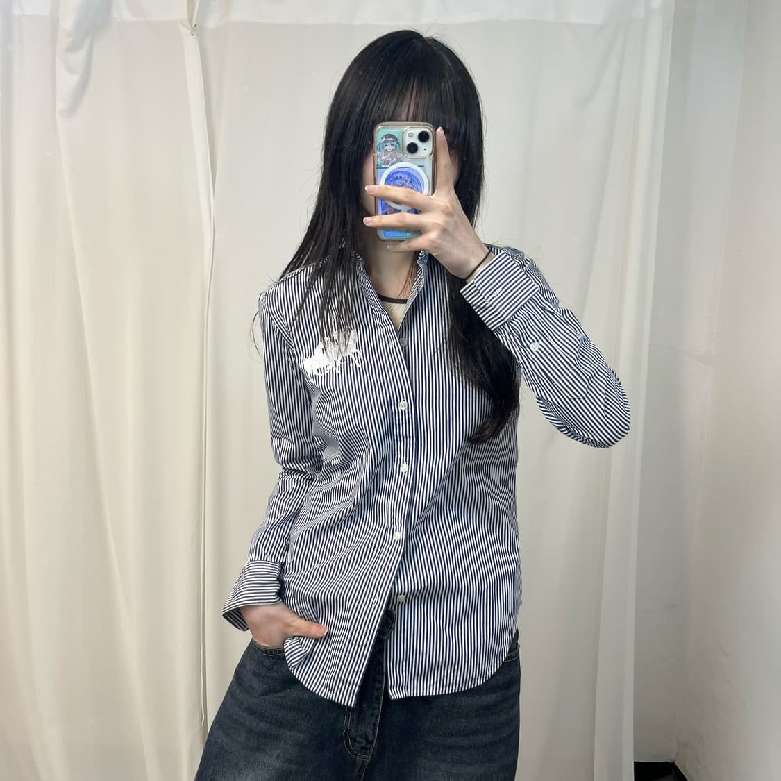 Polo big pony double player stripe shirt ⋆ women 2 / S size ⋆ 어깨 36 가슴 44 총장 61 ⋆ price 25,000 ⋆ model 167 / 48
