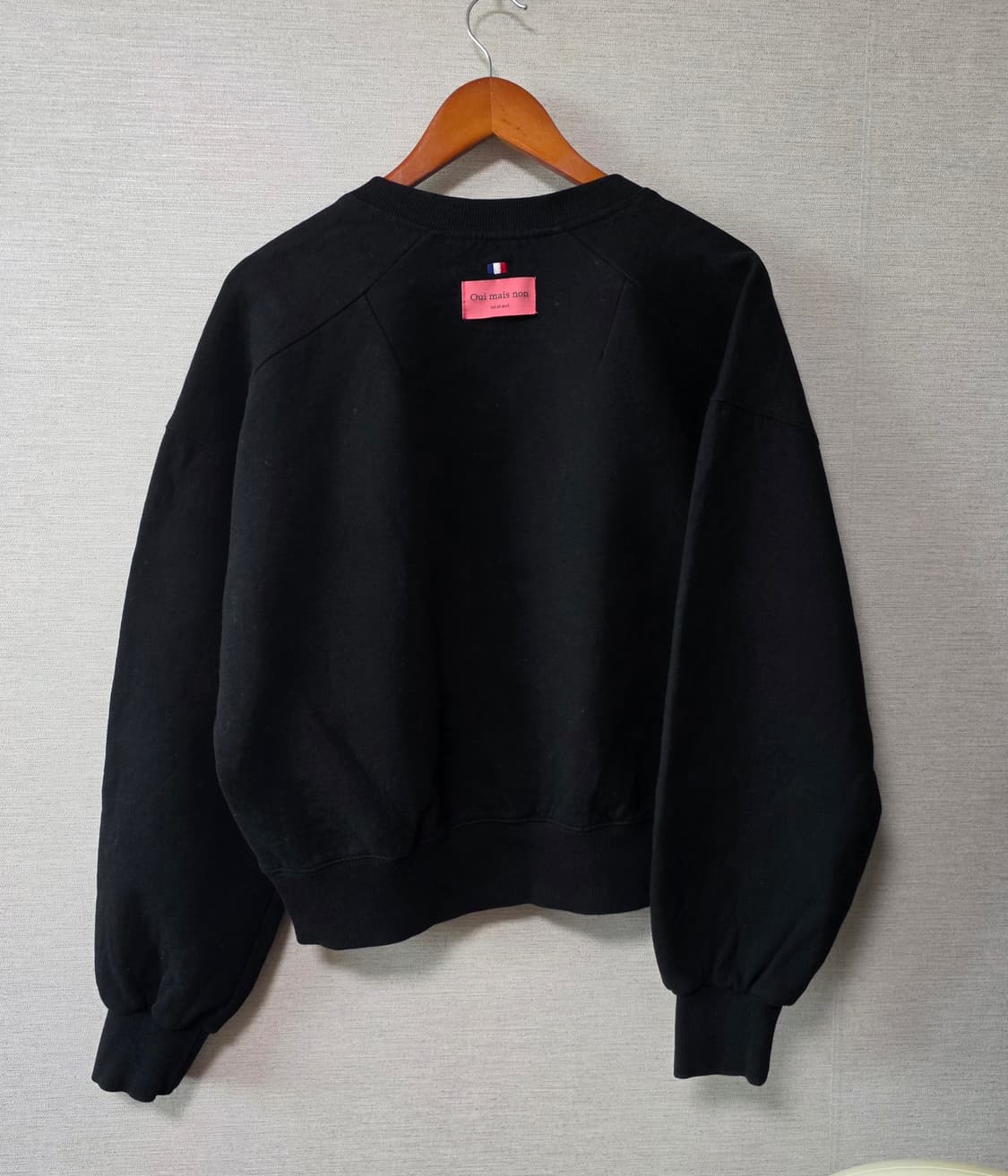색상 : 블랙 프리사이즈 가슴단면 62 / 총장 57 상태좋음 뒷면 상단에 프랑스 국기 컬러 자수 디테일과 “Oui mais non” 핑크 라벨이 포인트. 어깨선이 자연스럽게 떨어지는 레글런 소매에 아방한 핏으로 편하게 착용 가능. 뒷모습 포인트 예쁘다는 후기 많습니다. 택포 중고거래 특성상 교환/환불 불가