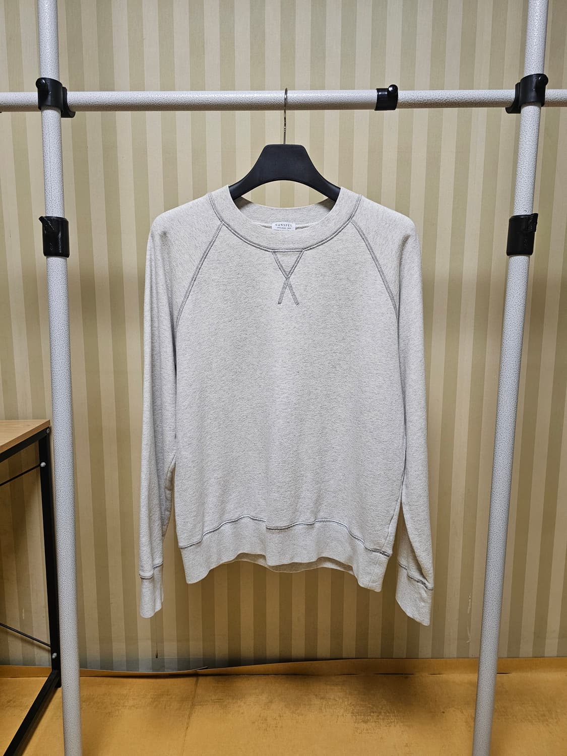 선스펠 맨투맨 멜란지 그레이 입니다. 탄탄하면서도 미니멀한 실루엣이 선스펠 이너 특유의 매력이 느껴집니다. 양질의 코튼 원단이 드라이하면서도 웨어러블한 착용감이 굿입니다. 정사이즈105 추천 어깨47 가슴58 소매67 총장67 코튼100 네고, 택포문의 정중히 차단합니다.