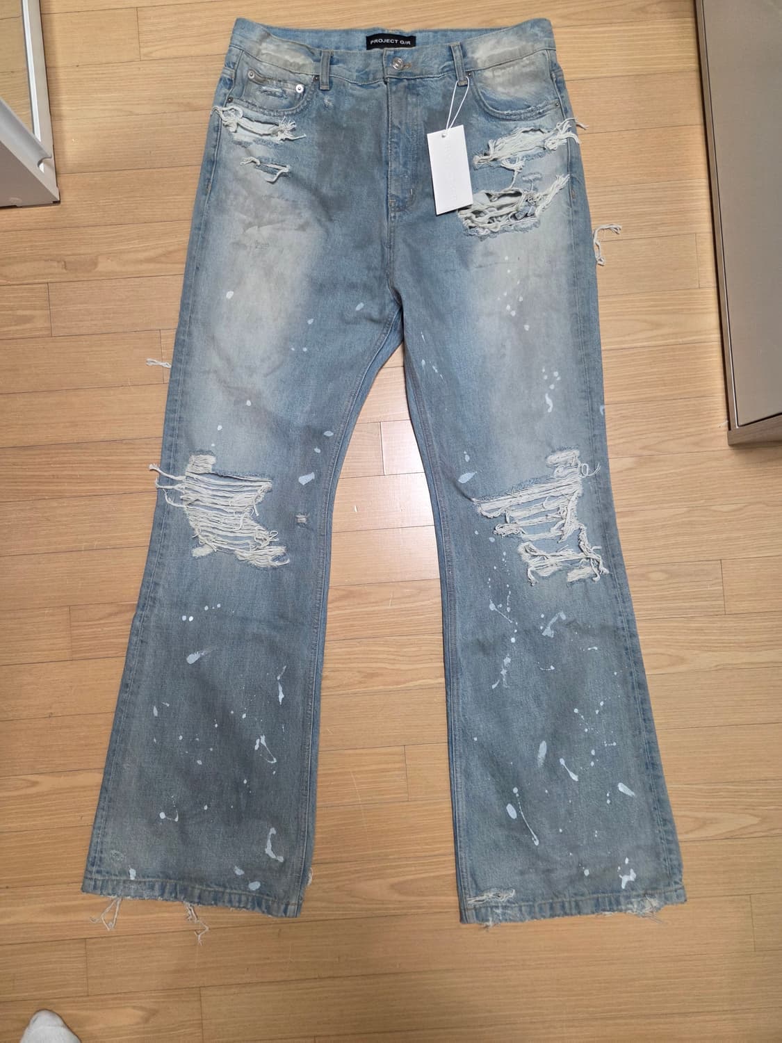 프로젝트 지알 디스트레스 부츠컷 진 실측 집에서 1번 택달린 새상품입니다. 싸게 내놓겠습니다. 사이즈 문의 받습니다.