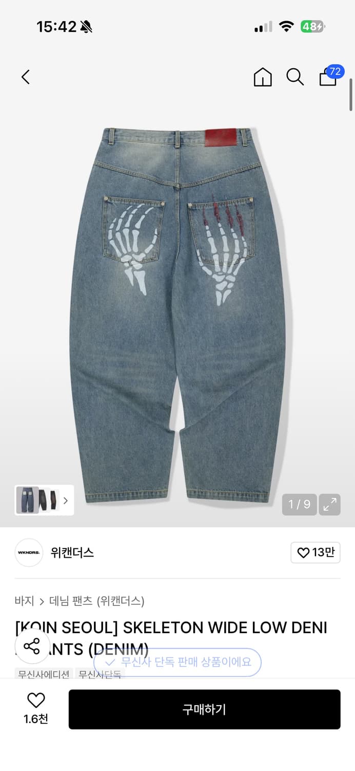 엑스트라오디너리 레이저 커브 프렌트 데님 루즈핏 팬츠 XL 새상품