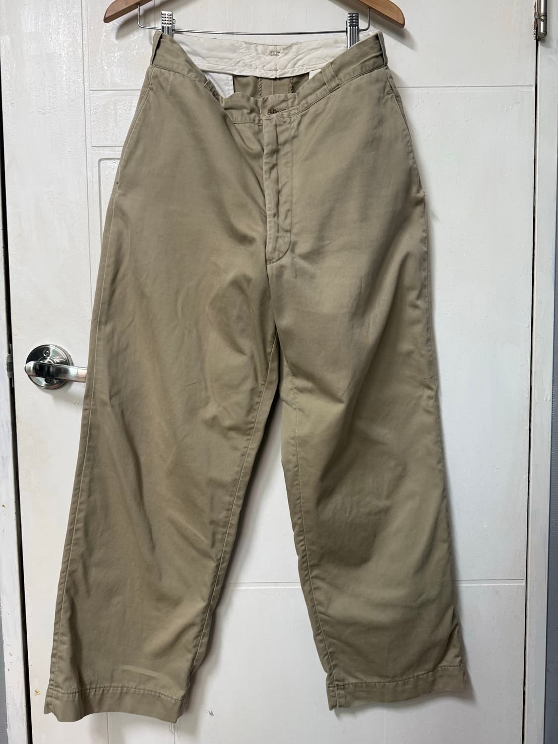 한국 전쟁부터 60년대 베트남 전까지 사용 되는 미군 카키 오피서 트라우져입니다. 이전의 세대 모델과 가장 큰 차이인 지퍼 플라이 디테일. 돋보이는 높은 밑위와 여유있는 스트레이트 핏. 퍼티그 팬츠와 나란히 하나 쯤 갖고 계시면 두루 활용도 높을 제품입니다. 실제 29~30 사이 사이즈 정도 되겠습니다. 전반적인 많은 사용감 존재하는 컨디션입니다. 실측 사이즈는 측정 방법 및 상품 소재에 따라 +- 1cm 정도 차이가 날 수 있으니 참고 바랍니다. 반품&환불 안됩니다 신중한 구매 부탁드립니다.