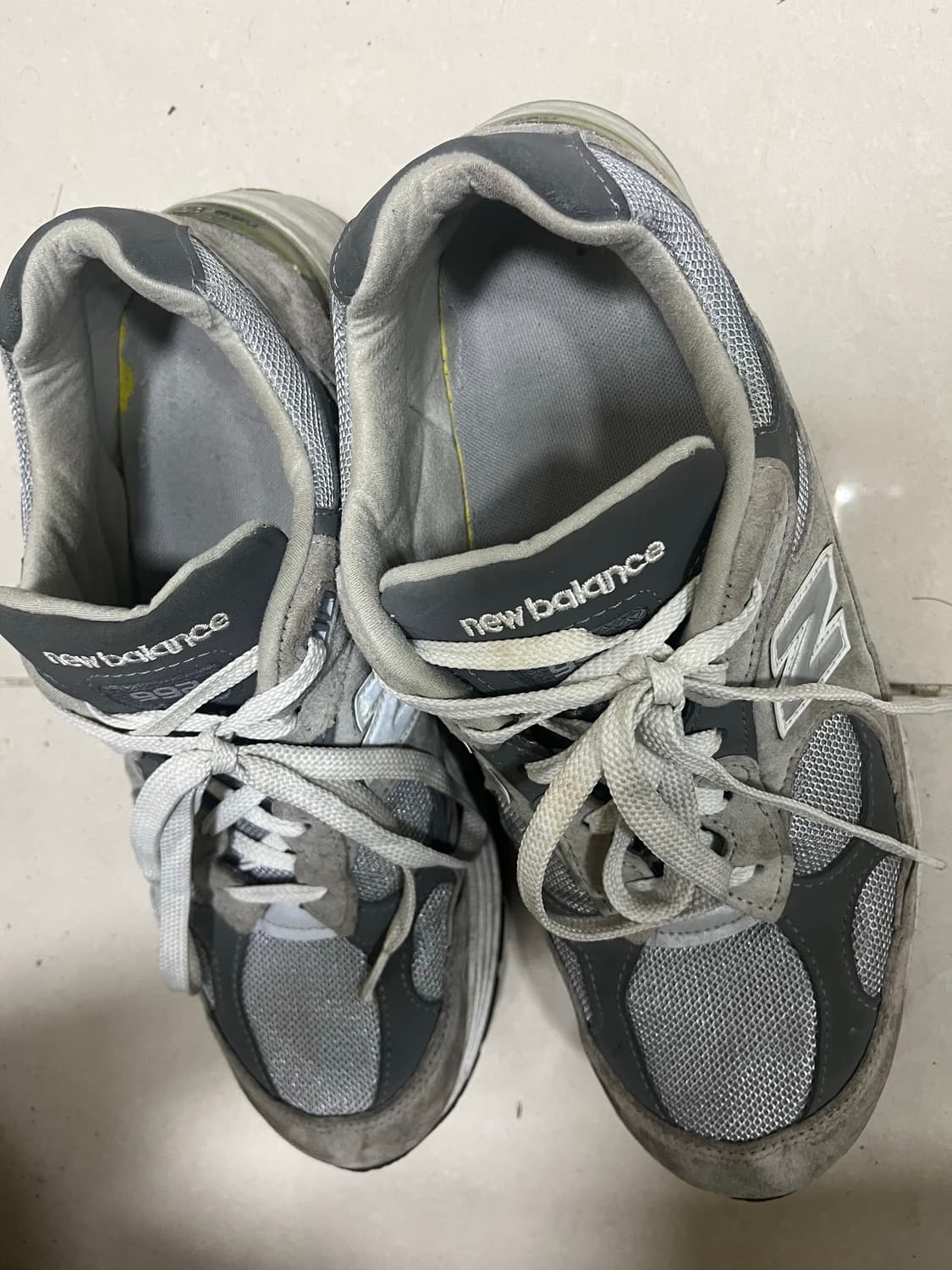 뉴발란스의 스테디셀러 992 그레이입니다. 2022년 5월 생산분이며, 아웃솔 마모 상태나 스웨이드 컨디션은 연식 대비 양호합니다. [상태 안내] • 뒷꿈치 안쪽: 사진과 같이 뒷꿈치 안쪽 스펀지 천 부분이 터져 내부 보강재가 보입니다. 992 모델에서 자주 발생하는 현상이며, 착용 시 겉에서는 보이지 않습니다. • 기타: 그 외 인솔 로고 살아있으며 아웃솔 뒷굽 마모도 적습니다. • 사이즈: US 11 (290mm) • 가격: • 배송비: 4,500원 (제주도 및 도서산간 지역 9,000원 추가)