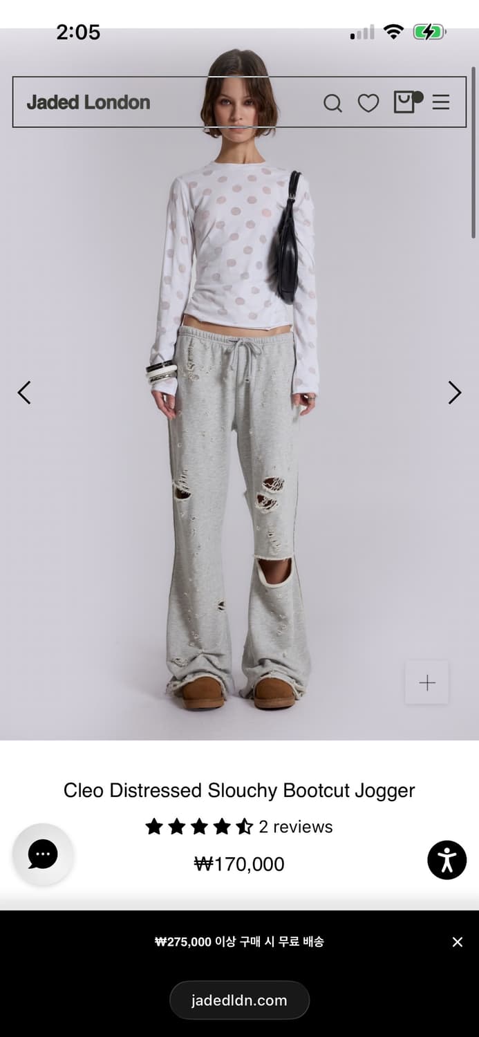 Jaded London의 클레오 찢어진 부츠컷 추리닝입니다. 오늘 배송이 왔는데 저한테 커서 판매해요ㅠㅠ 배송비 포함 21만원에 거래했는데 정가로 판매할게요! 여성 28 이상 입으시는 분들한테 예쁘게 맞을 것 같아요 !