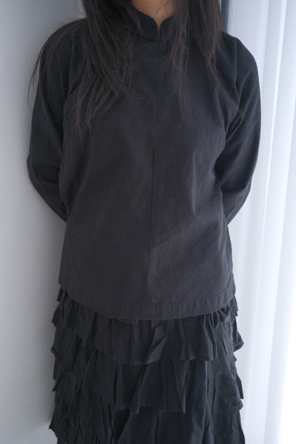 Comme des Garcons BLACK Jacquard china top AD 2012 Size: m Chest: 50 Length: 59 Color: black Fabric: cotton 83%, polyester 17%