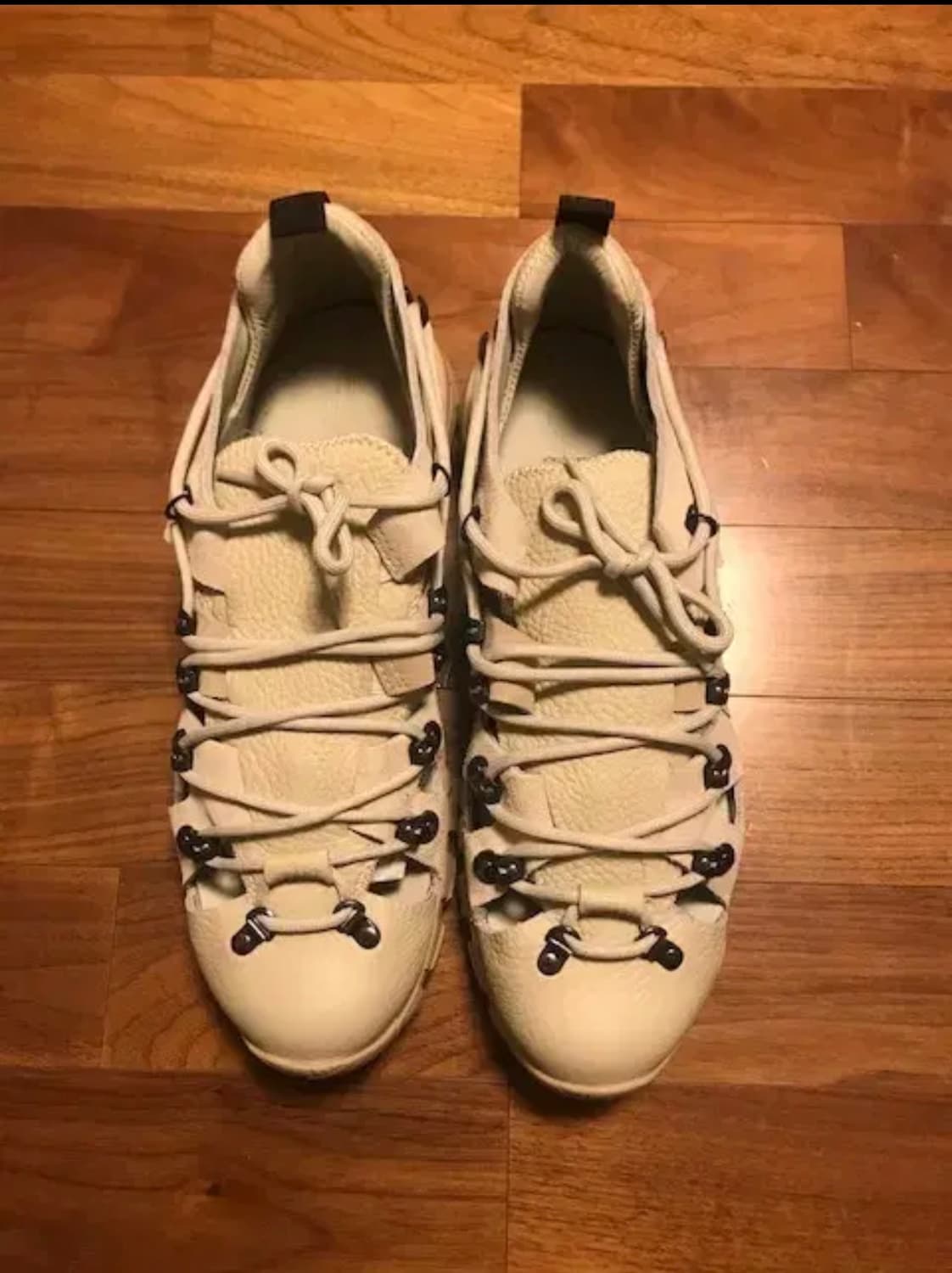 niceness 나이스네스 veneto 43사이즈 275-280 착용하는데 잘 맞습니다 전체적인 형태는 마운틴 부츠지만 샌들의 특징두 가지구 있습니다 비브람 창이구, 끈이 두 종류라 포인트로 활용할 수 있습니다 소가죽이구, 새제품이에요 아이보리 색상입니다