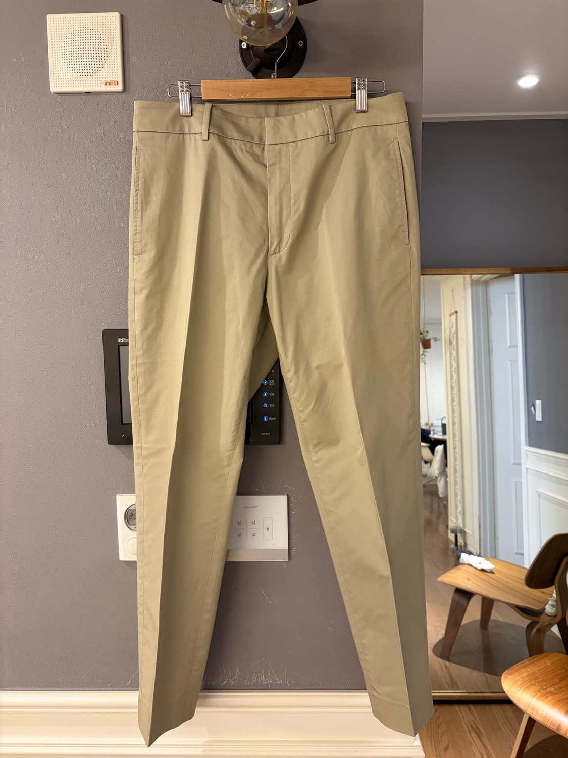 몽클레어 베이지 슬랙스 입니다 사이즈 32 48 사이즈 면 엘라(스판) 혼방이라 정말편합니다 골프복으로 입어도 좋아요 실착 2회 단시간 입어서 새상품급입니다 o