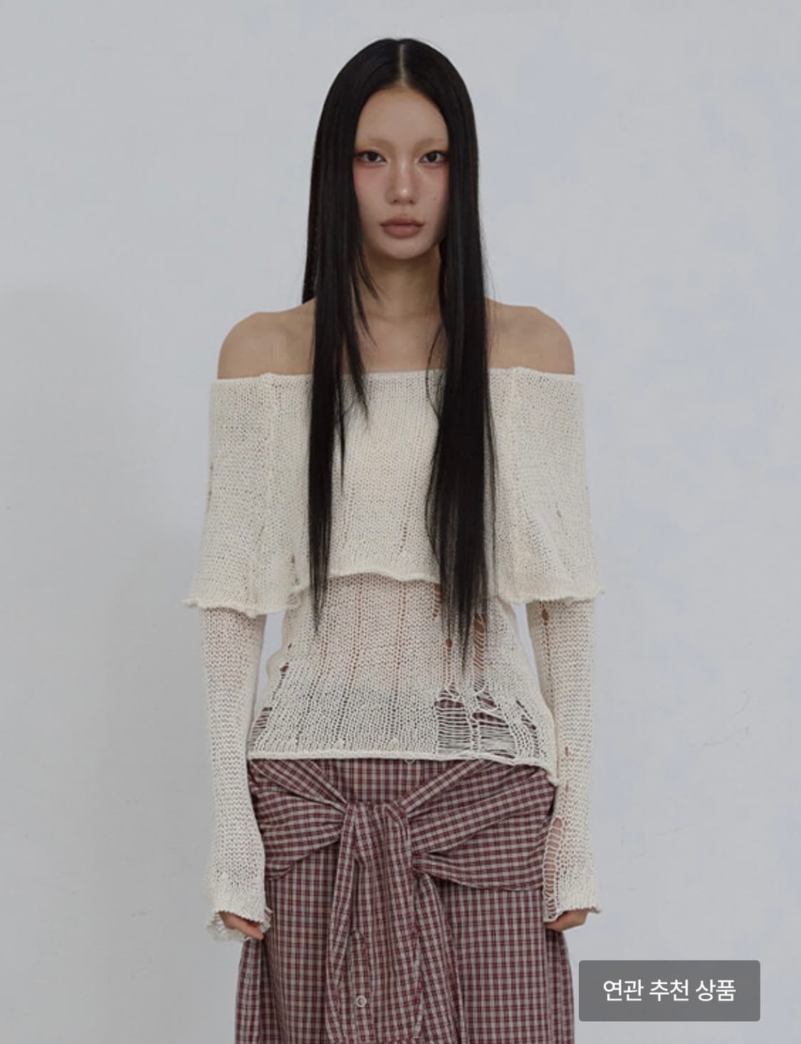 DISTRESSED OFF-SHOULDER TOP_ IVORY