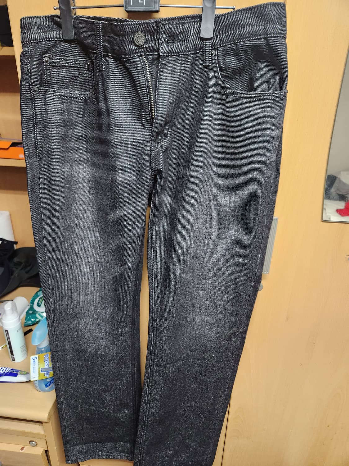 • 페이탈리즘 스트레이트 워싱 데님진 흑청 (34)