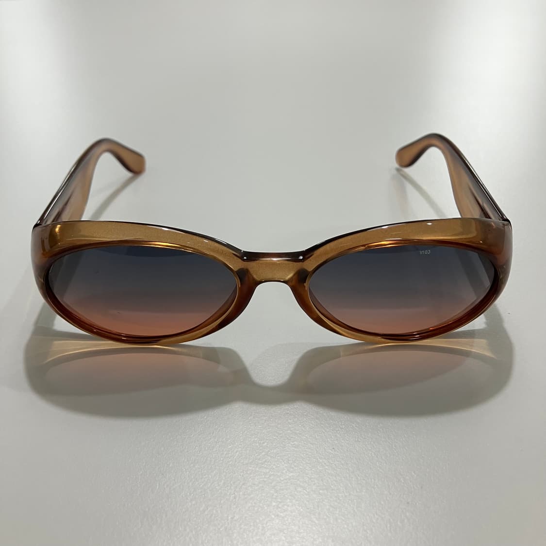 90s Fendi Oval Sunglasses 90년대 이탈리아에서 제작된 펜디 선글라스입니다. 은은한 반투명 브라운 프레임과 렌즈 하단으로 갈수록 옅어지는 그라데이션 렌즈(V103)의 조합이 매력적입니다. 특별한 하자 없이 좋은 컨디션입니다. 일반 케이스로 대체해서 드립니다. 문의 없으시면 바로 안전결제 해주시면 되세요. 평일 오전 10시전 결제시 당일 발송 made in italy 남여 공용 Lens Width: 50mm Lens Height: 35mm Bridge Width: 15mm Temple Length: 130mm Total Frame Width: 130mm