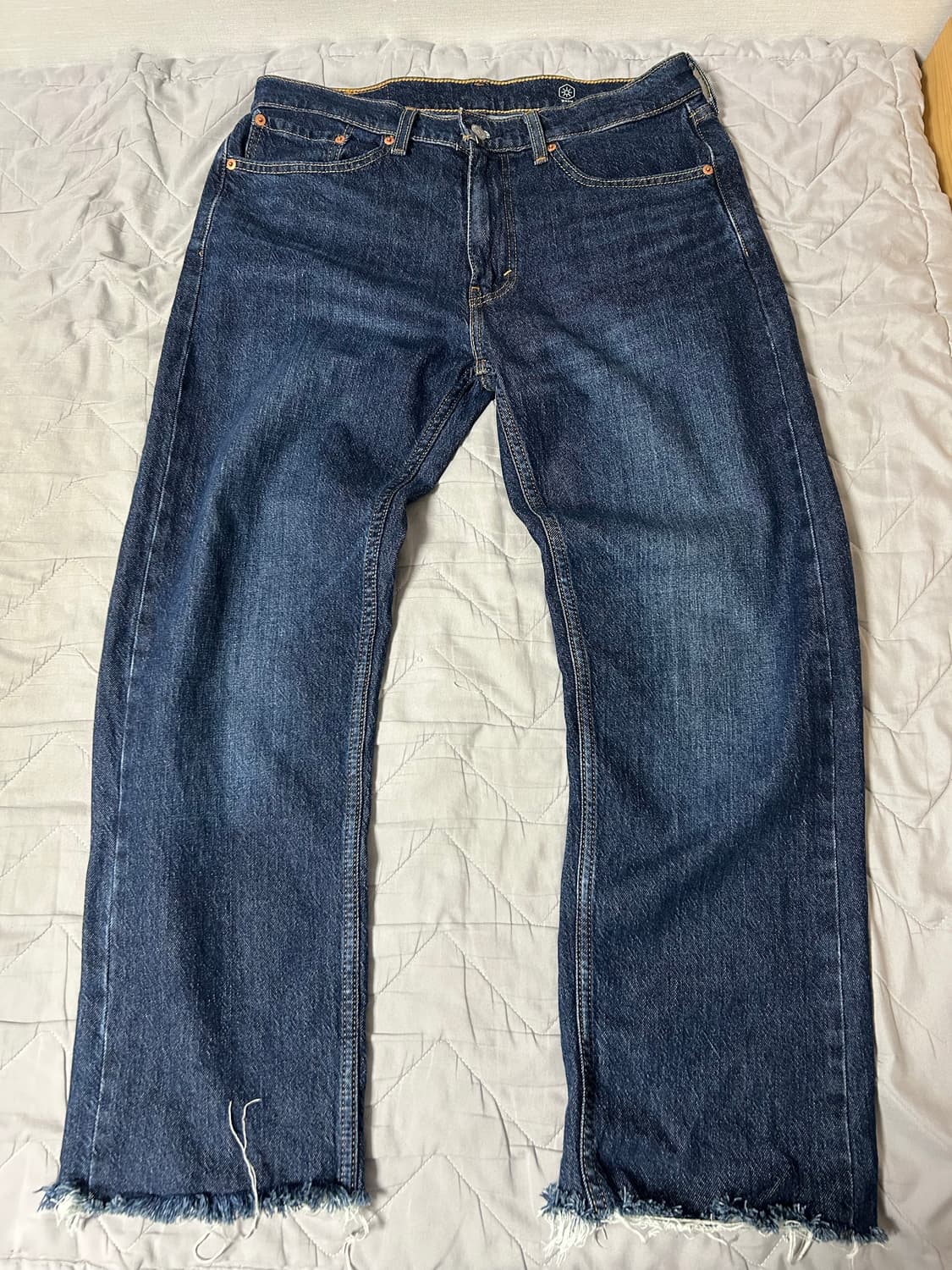 리바이스 505 34에 32 제품입니다 밑단이 이쁘게 절개 되어 있습니다 쿨거시 택포로 드립니다 총장 - 99 허리단면 - 44 허벅지 단면 - 30