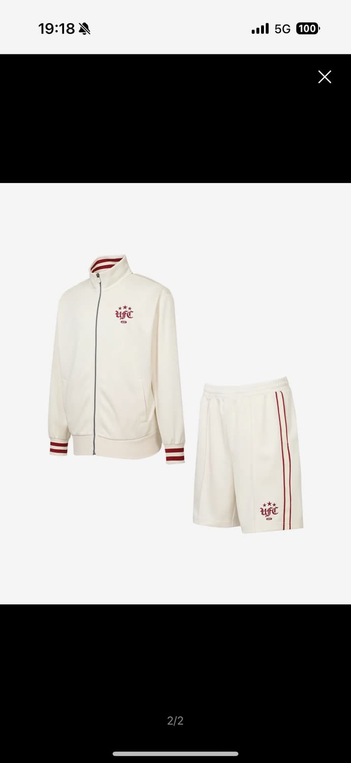 UFC 로고가 포인트인 트레이닝 세트예요 상의는 집업 스타일이며, 하의는 반바지입니다 상의L, 하의2XL입니다 오자마자 피팅해본게끝이에요 정가 21만원인데 싸게팔아요