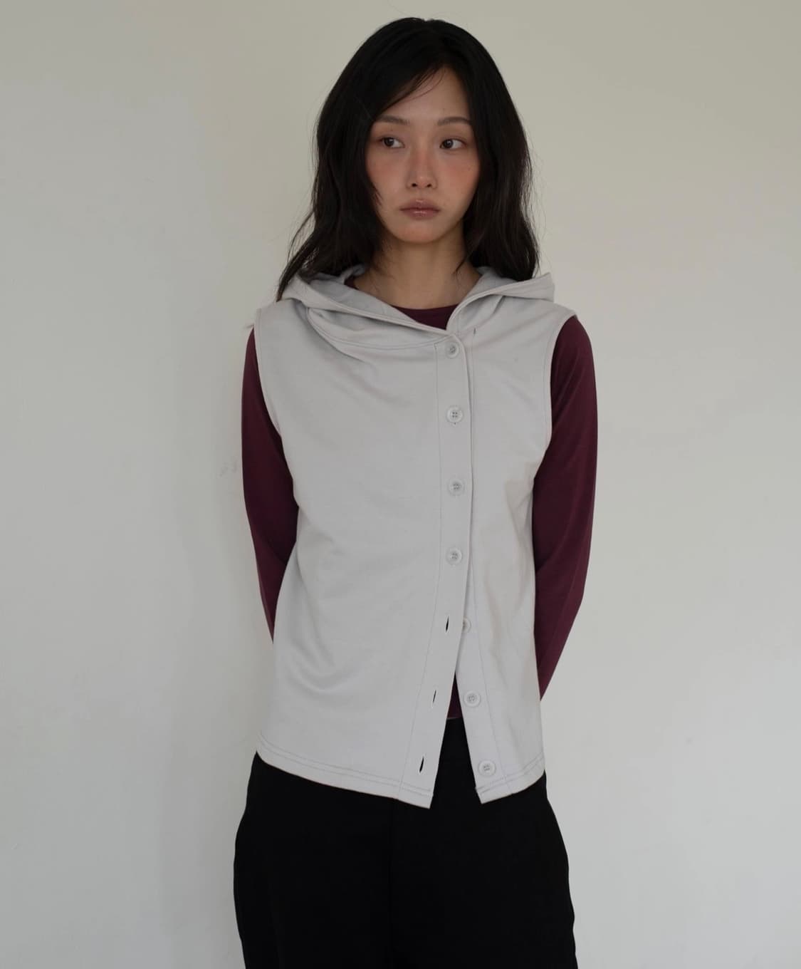 온스카 BUTTON HOODIE VEST (LIGHT GREY) 제품 판매합니다 ! 현재 공홈에서 품절 상태이고 한번 실착만 진행해 아주 좋은 상태입니다 :) 추구미가 바뀌어 사고 안입어 판매합니다 - 배송비 3,000원