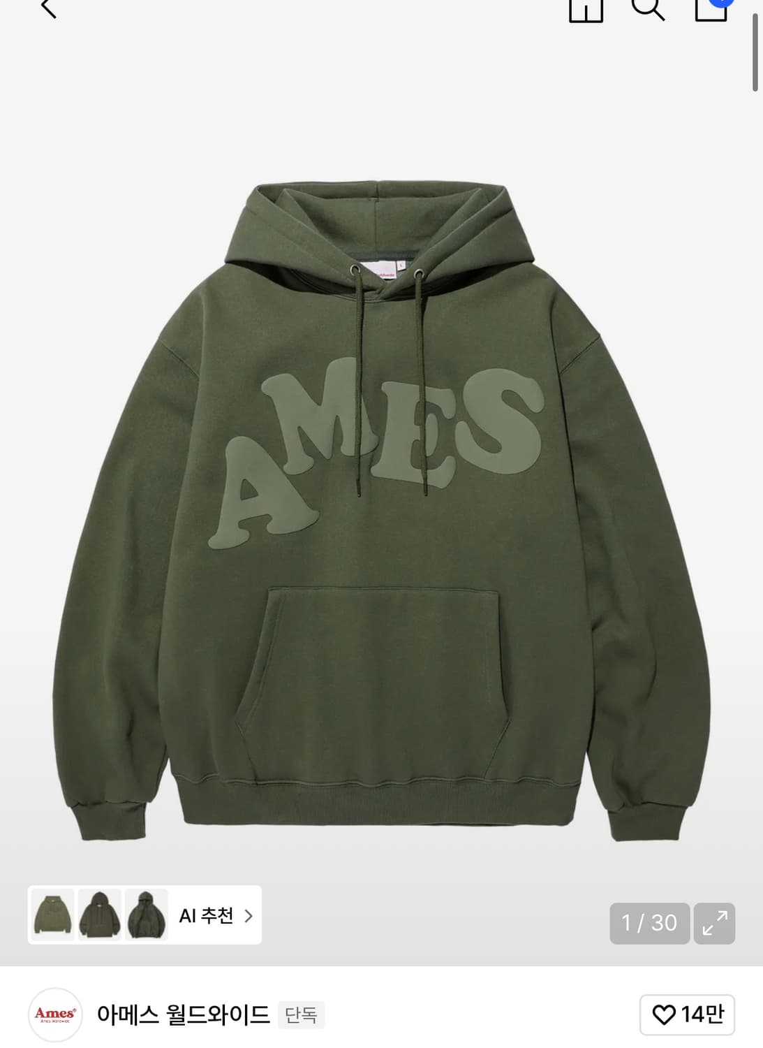 아메드 월드와이드 빅타이포 후드티 그레이 기모 s