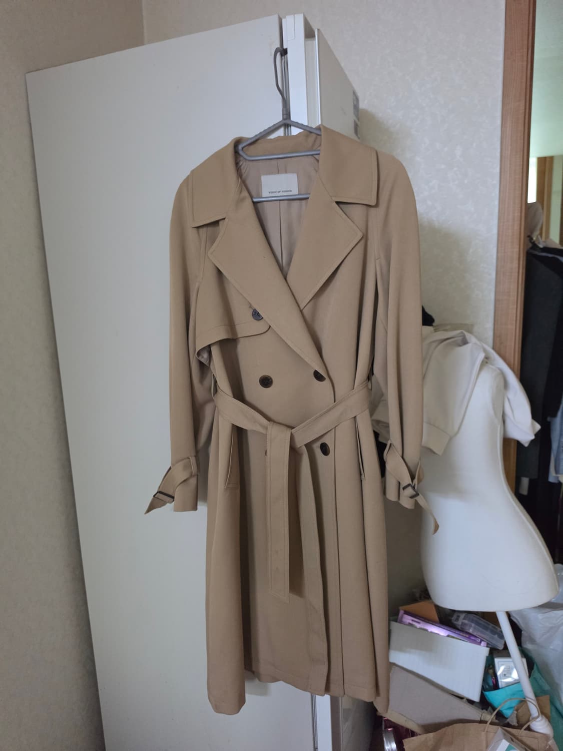 보브 트렌치코트 판매합니다. 무난한 베이지 색상이라 어디든 잘 어울립니다. 벨트 디테일로 허리 라인을 강조할 수 있습니다. 55사이즈, 넉넉하게 나왔어요 가슴반품 50cm 총장 107cm 사용감 별로없이 깨끗합니다 여분단추도있어요