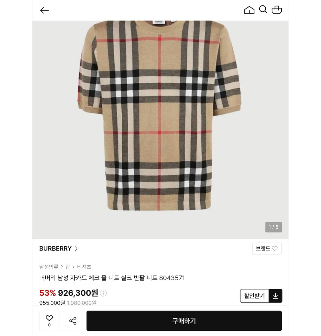 버버리 반팔니트
