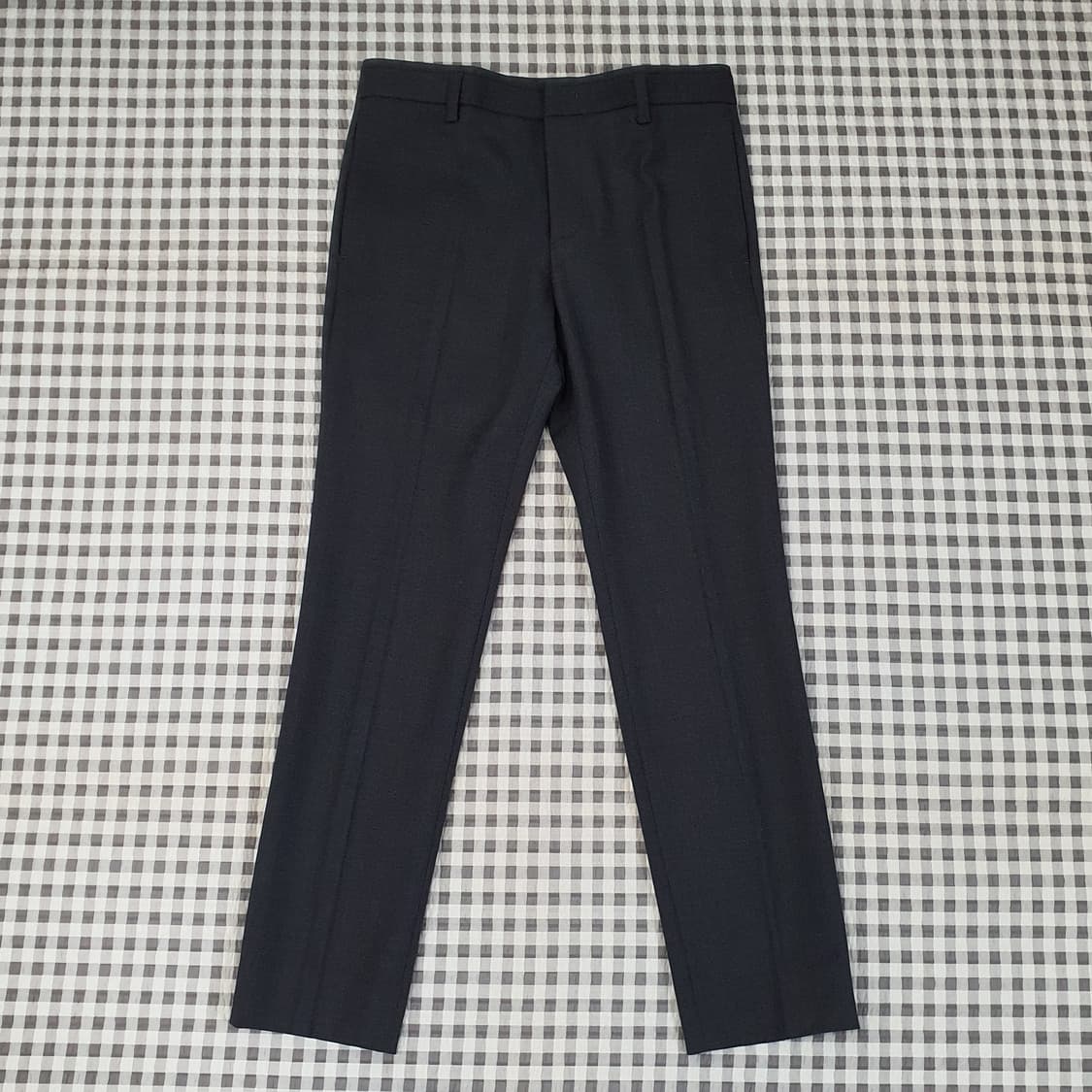 단면 39 총기장 94 밑위 26 진회색 스판 슬랙스 팬츠이에요. 간절기부터 입기좋구 얇은편이에요. 신축성좋구 밑단16.5정도로 슬림핏입니다 배송비 (3.000원) 다른옷이랑 같이 구매시 택배비 무료. 상태 좋으나 중고입니다. 예민하신분 신중한 결정 부탁드립니다.