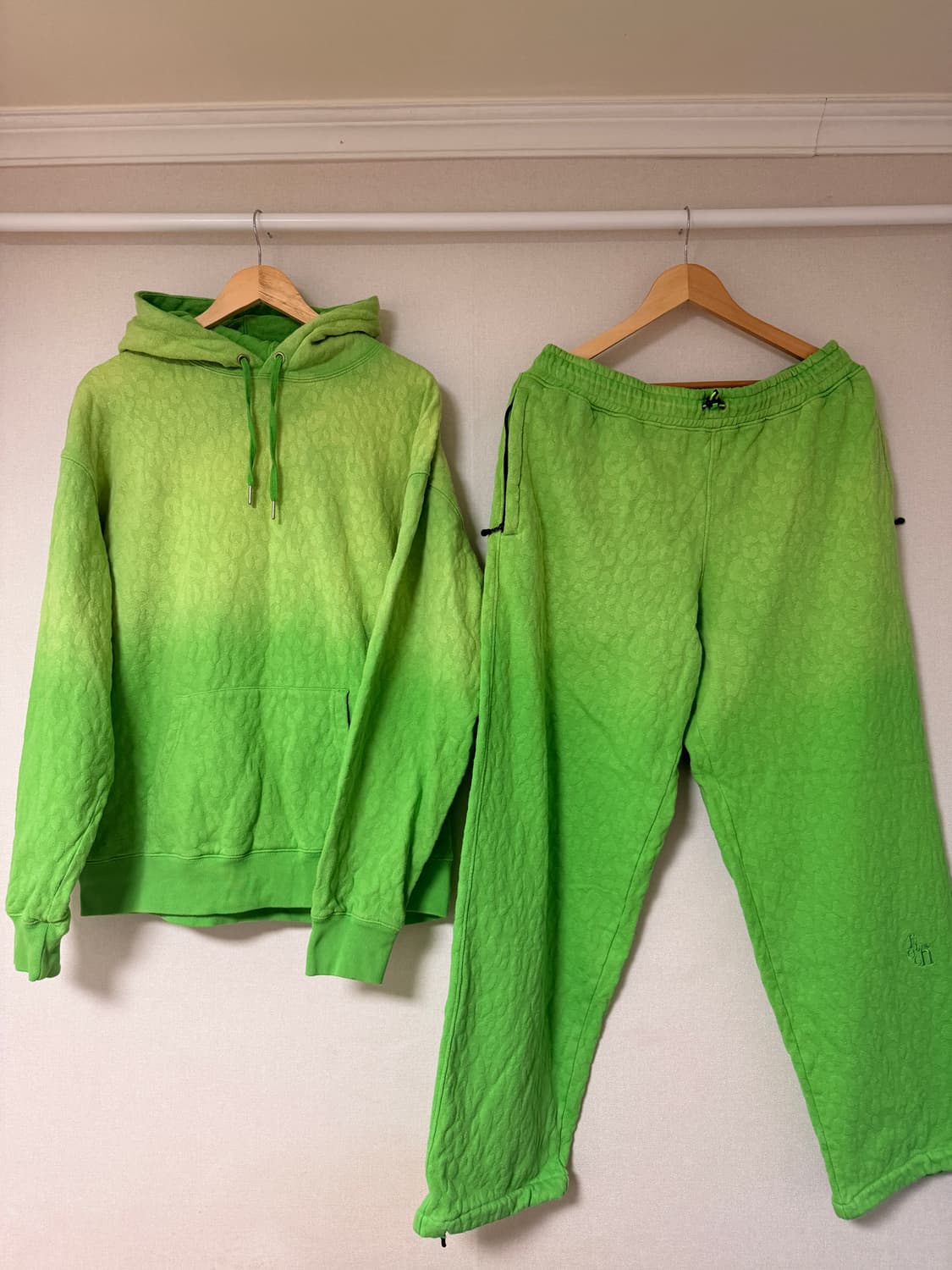 실착 0회 상의 사이즈는 사진에서 보시면 되고 하의는 총장 105정도 허리는 40가까이 되서 마르신분이나 살집이 있으신분도 편하게 맞으실거예요 밑단도 스트링으로 조절 가능합니다:)
