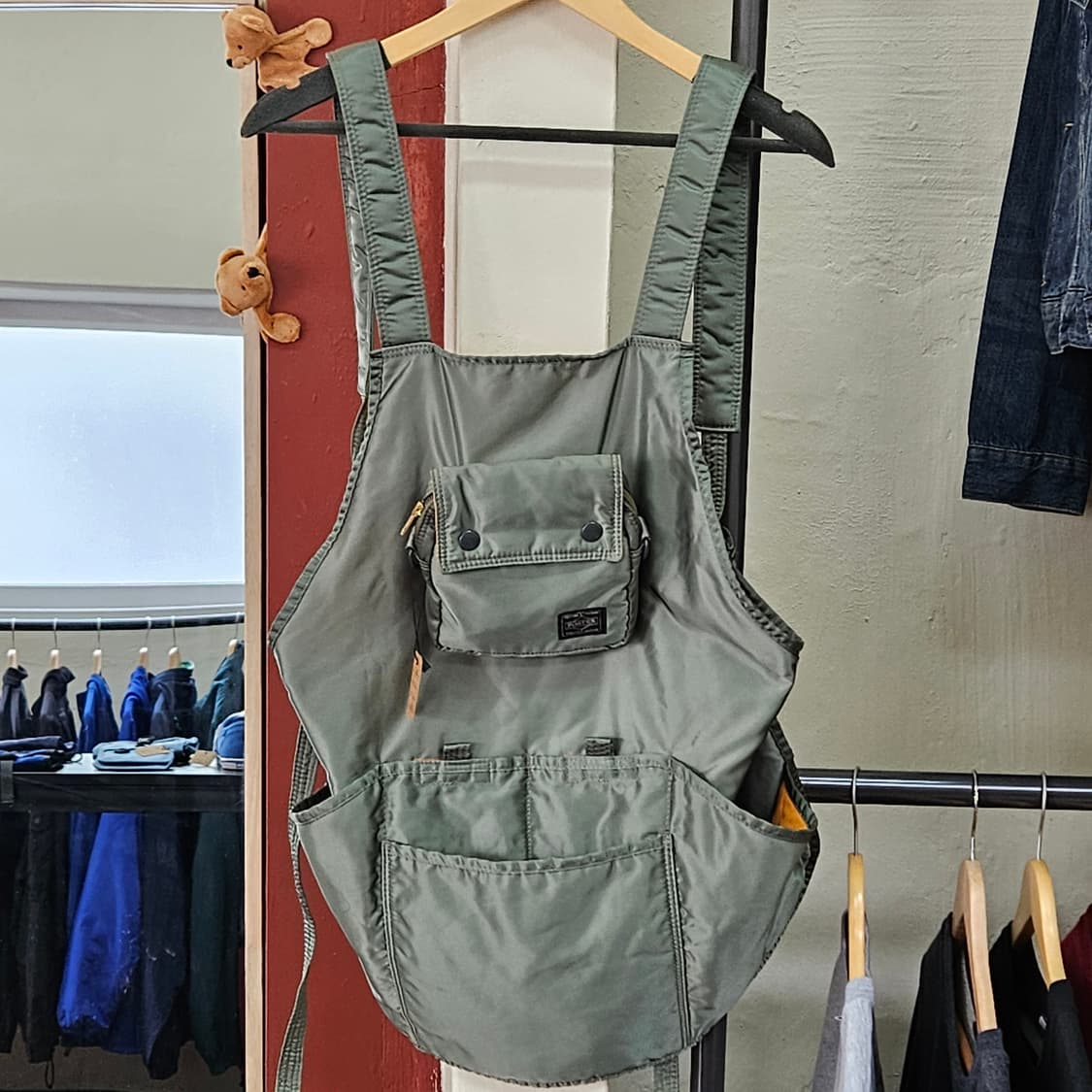 - 포터와 빔즈보이가 콜라보한 제품 - 포터 탱커 재질로 제작됨 - 가슴의 파우치는 탈부착 가능하고, 어깨끈 결합해 미니백으로 활용가능 - 파우치까지 온전한 개체, 이 정도로 깨끗한 개체는 찾기 힘듦. - 세월감 외 오염/하자 없는 컨디션 - 아담한 체격~보통 체격 여성까지 무난한 사이즈감 ※ 실측 사이즈 (몸판 기준) * 가로 : 약 65cm * 세로 : 약 58cm ※ 파우치(미니백) * 가로 : 약 16.5cm * 세로 : 약 16.5cm ※ 빈티지 특성상 교환/환불 불가 ※ 꼼꼼히 살펴보시고 구입 바랍니다. ※ 계좌 문의 환영